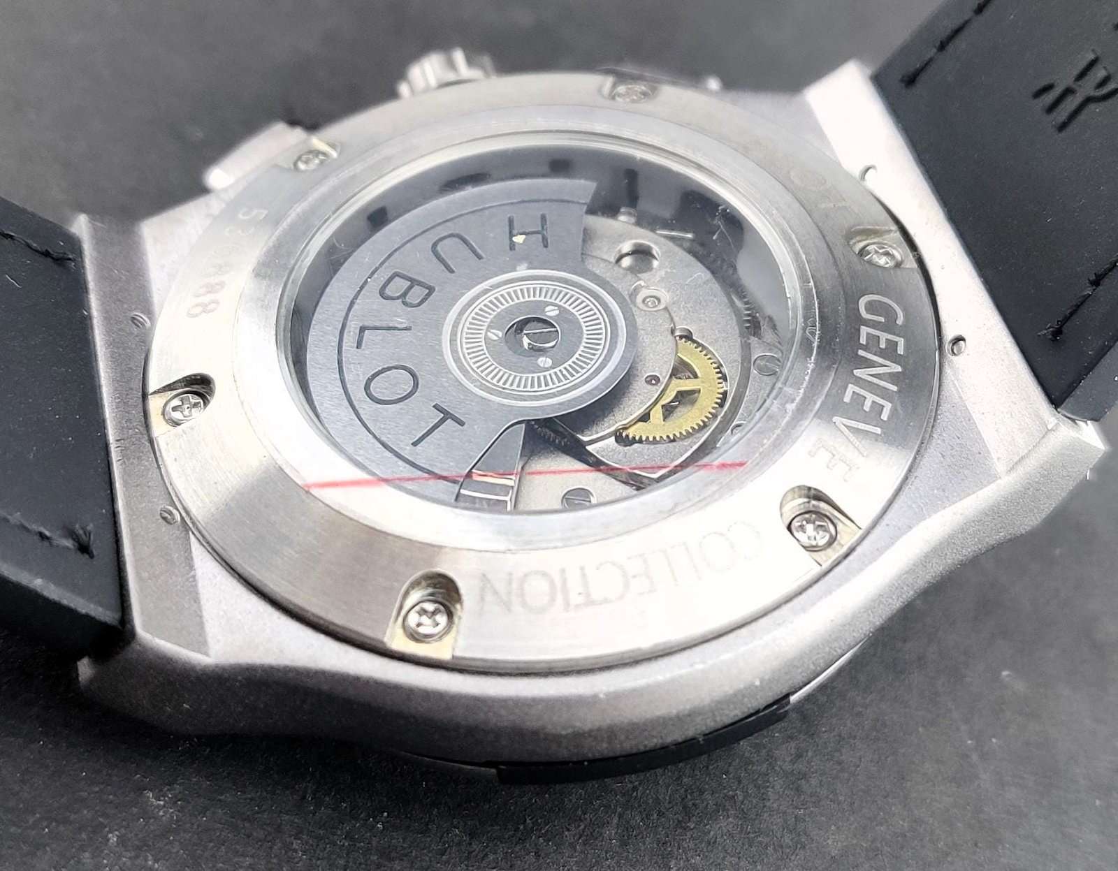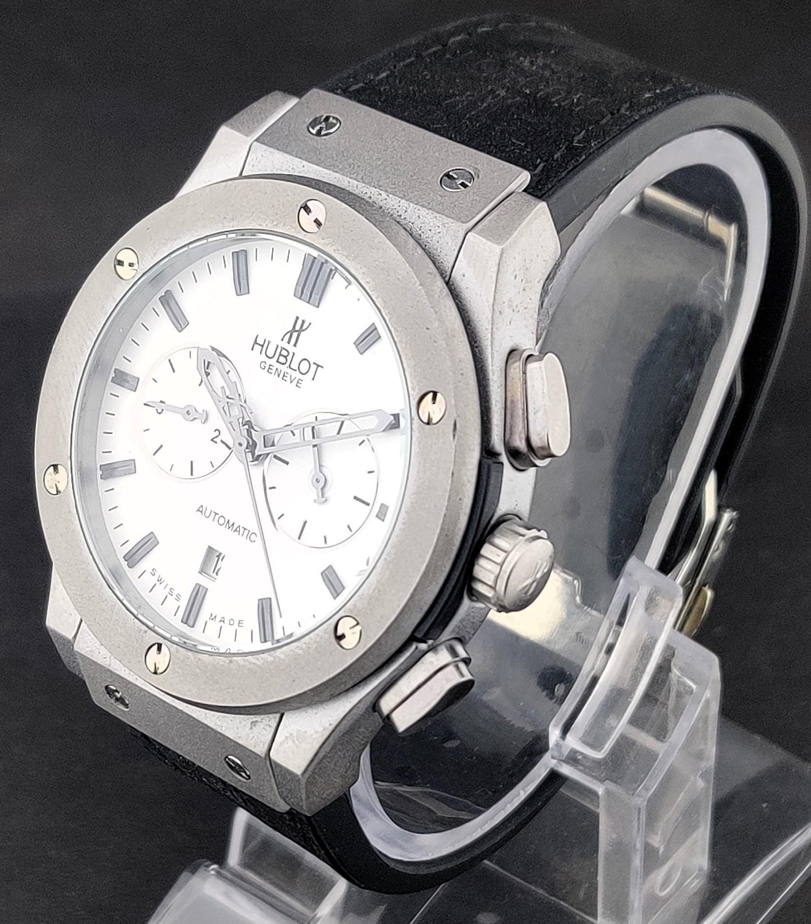 Hublot-Style Automatic Chronograph Watch | Silver & White Dial | Men’s Luxury Style | Refurbished Pre-Owned | Leather Strap