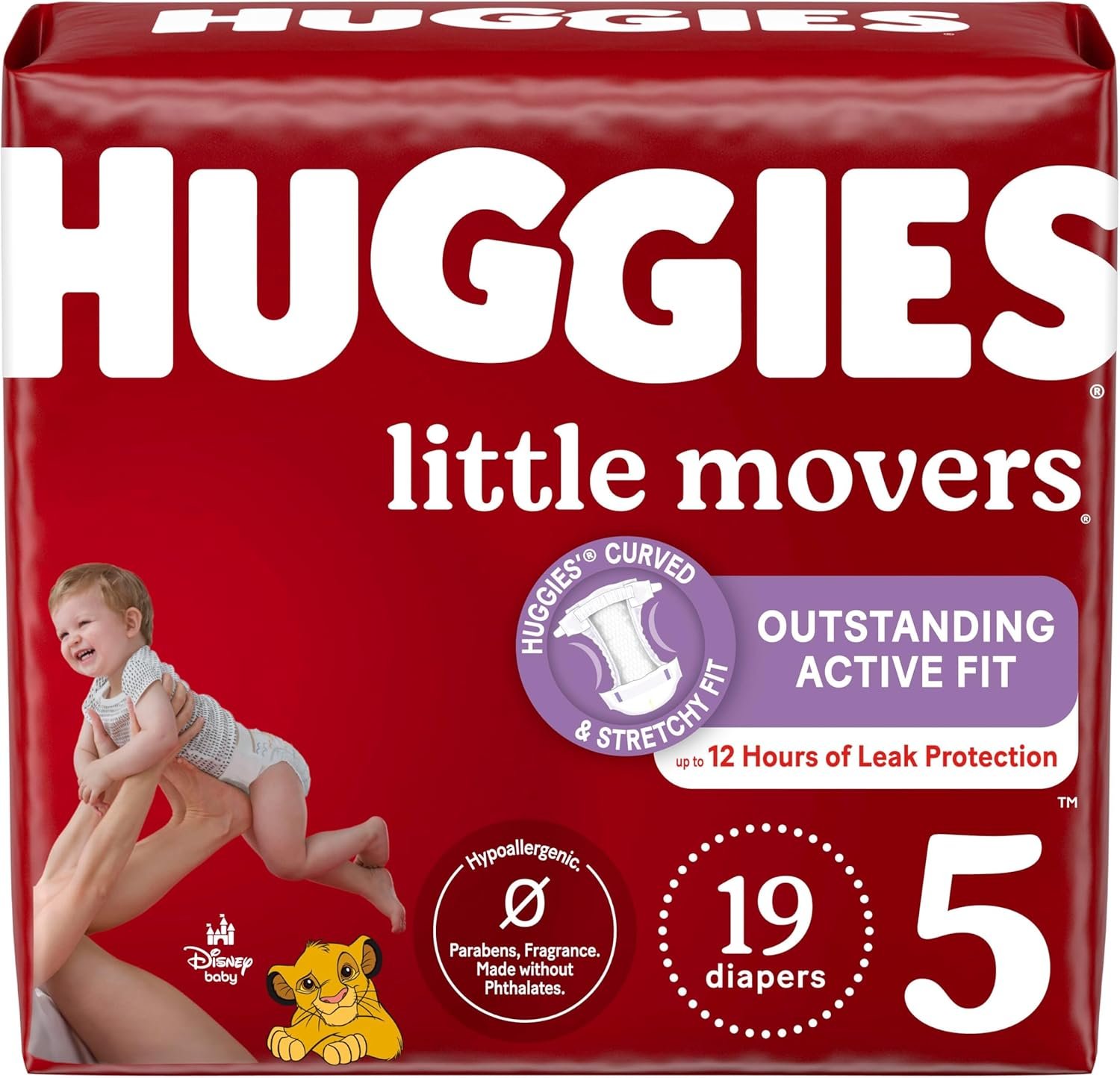 Huggies Size 5 Diapers, Little Movers Baby Diapers, Size 5 27+ lbs, 132 Count
