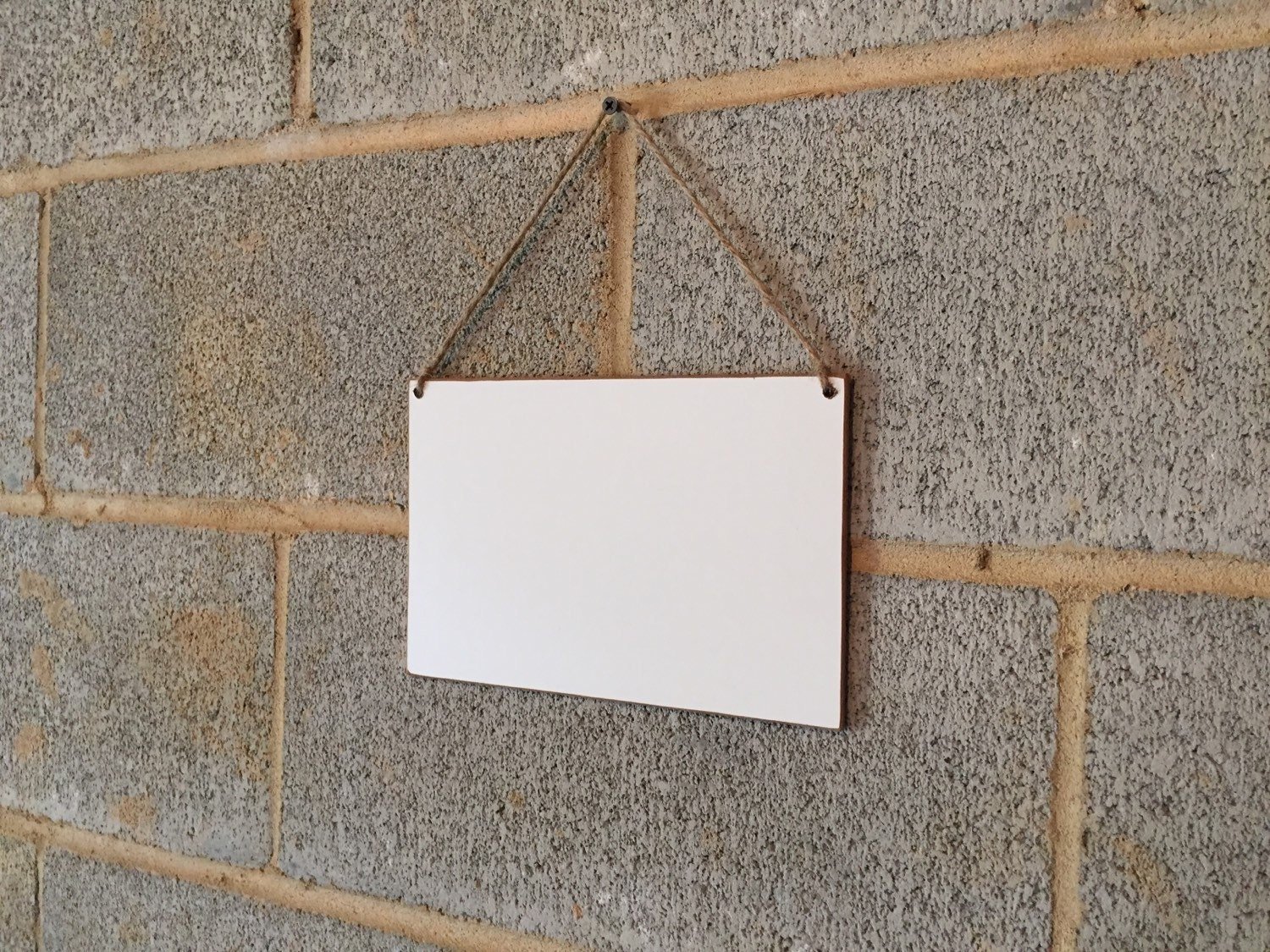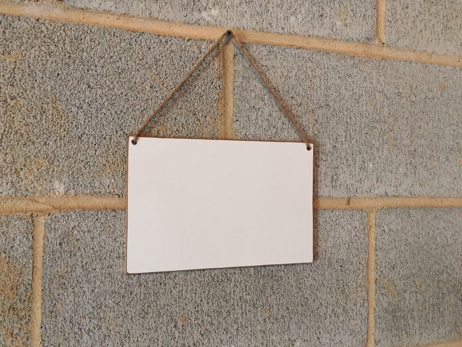 This sign is made of whiteboard. It makes the perfect addition to your home or office. It works great for a Do Not Disturb sign for your bedroom door or can be used as a Keep Out sign for your teenagers room. It is also ideal for the kitchens and businesses as well. Sign measures approximately 9 x 6 inches.