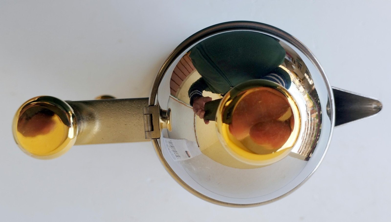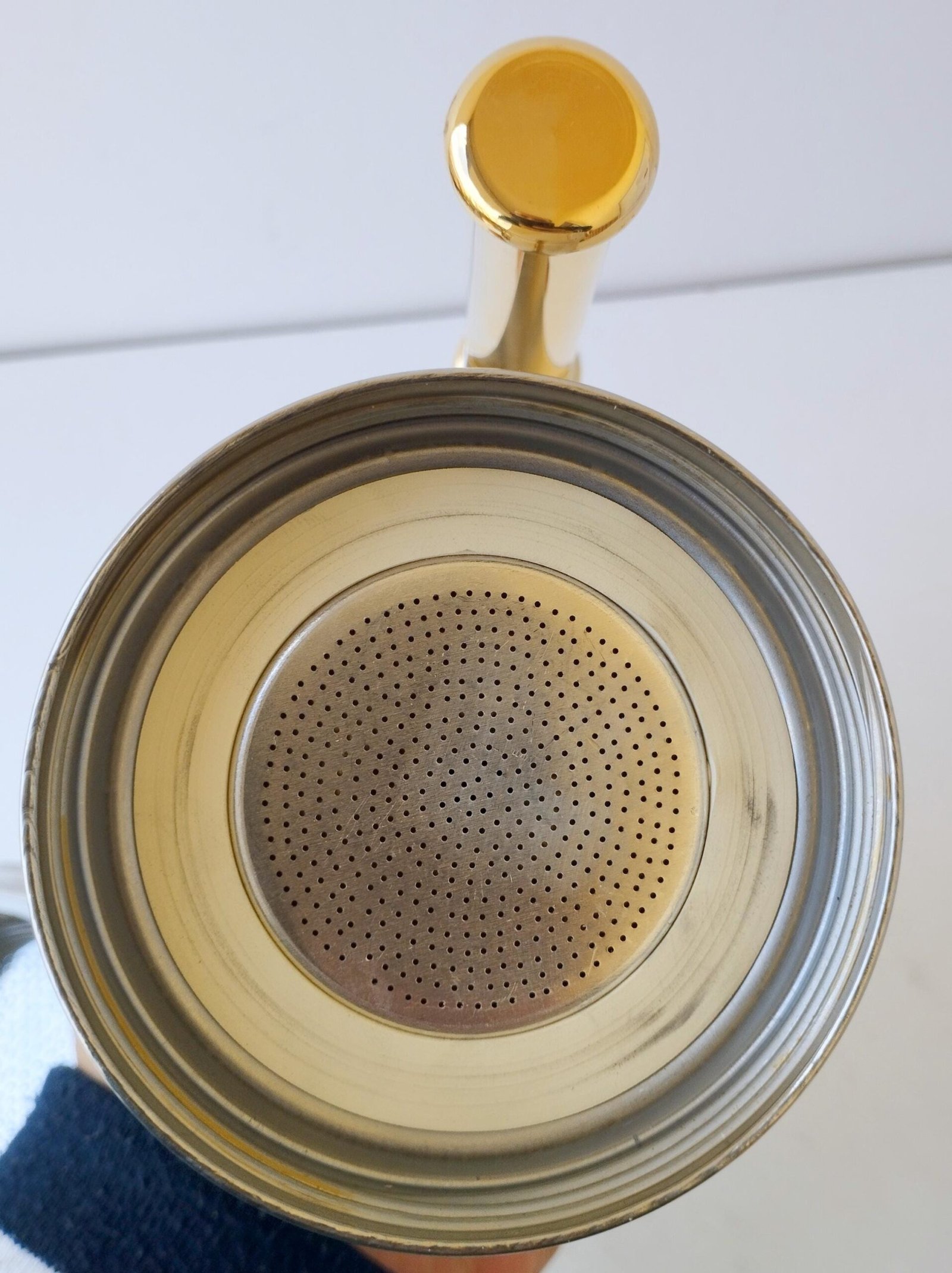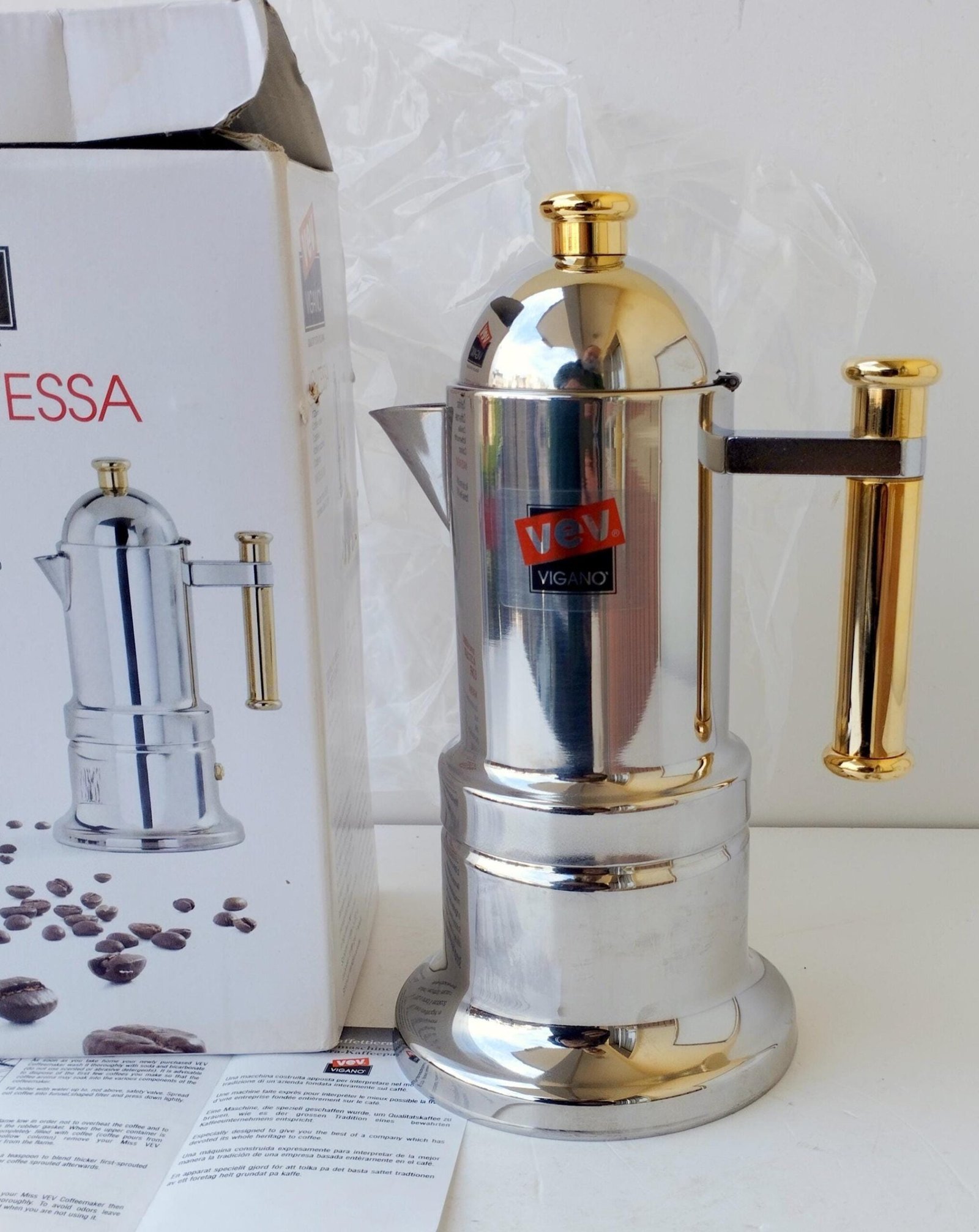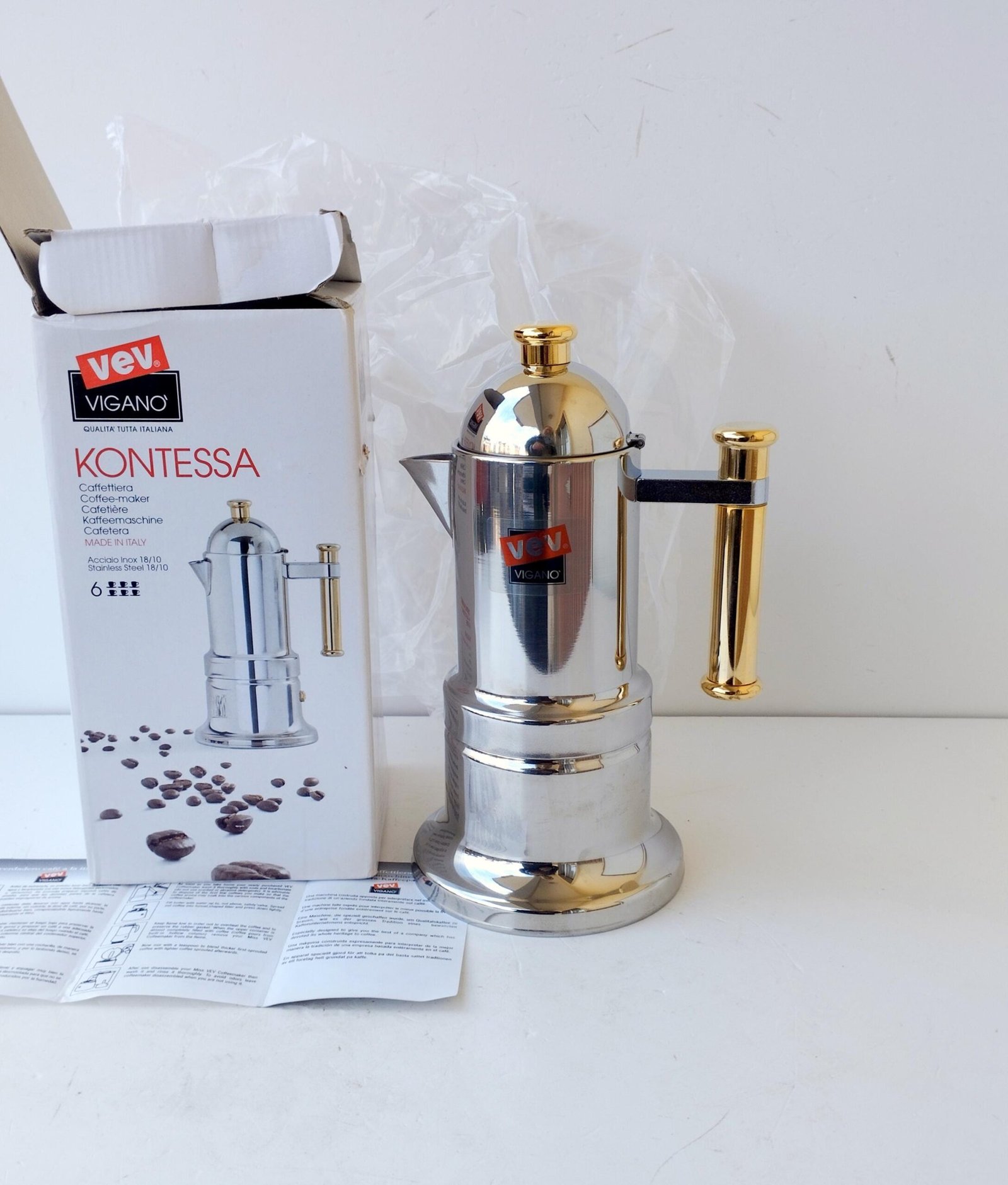 induction 6 cups Kontessa Vev Vigano coffee maker, in 1810 stainless steel height 25.5cm base diameter 12cm weight 1010grams capacity 500ml