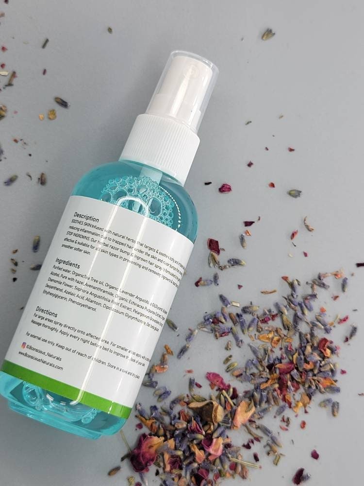 Shaving is about to get much easier with our razor bump and ingrown hair spray.This spray can be used after shaving to prevent ingrown hairs and razor bumps all over the body.Calming benefits of Tea Tree & Lavender Infused with witch hazel to SOOTHE, TONE, and HYDRATE your skin.