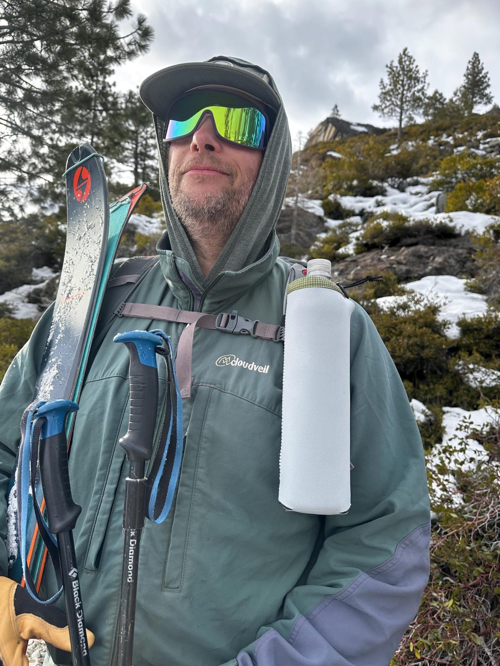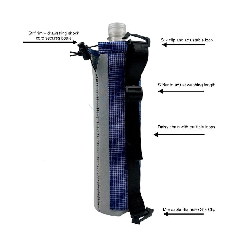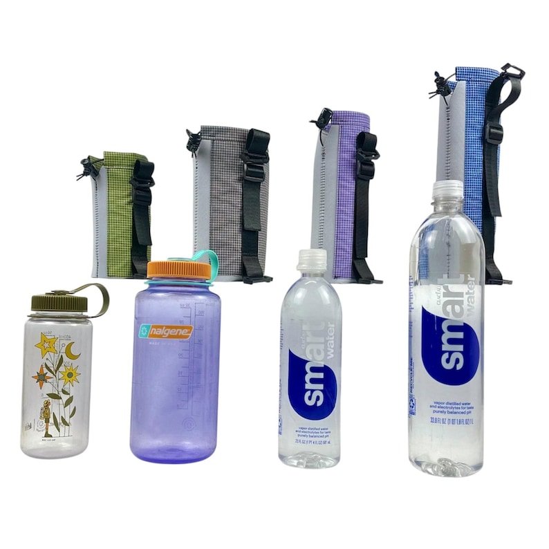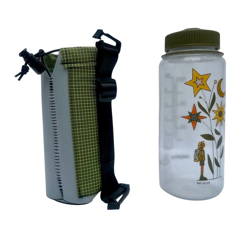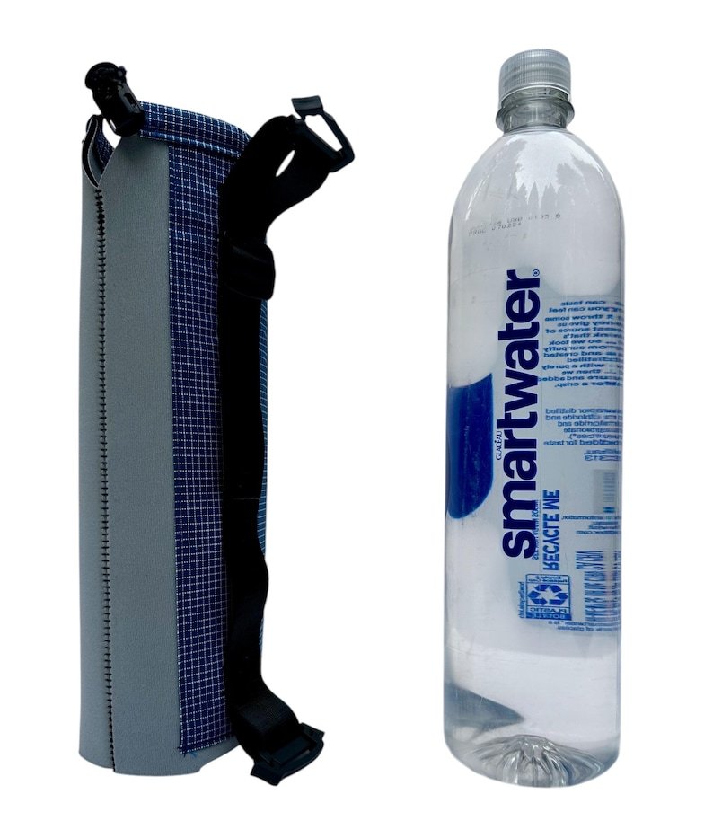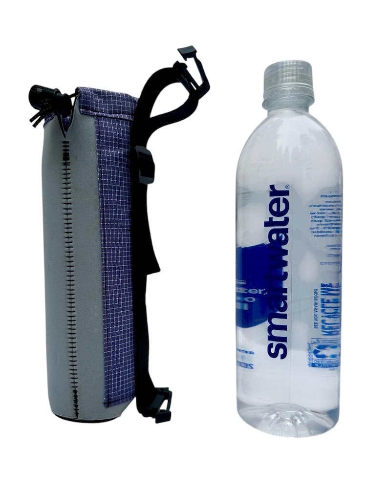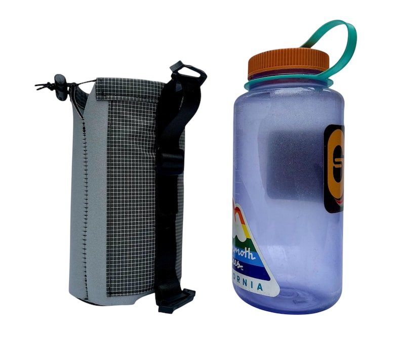 This water bottle sleeve is designed to not only keep your water bottle easily accessible on your shoulder strap when hiking or backpacking, but also to keep your water cooler and protect the plastic from UV rays! Because, let’s face it, drinking water from a plastic bottle that’s been baking in the sun while you hike is just plain gross! The sleeve will also keep your water from freezing during winter adventures.
