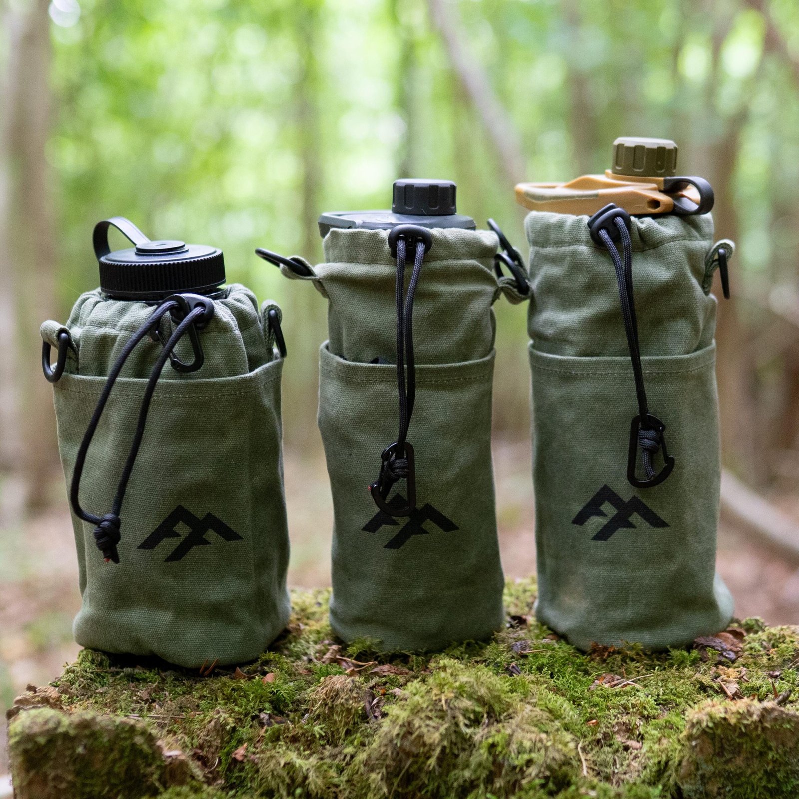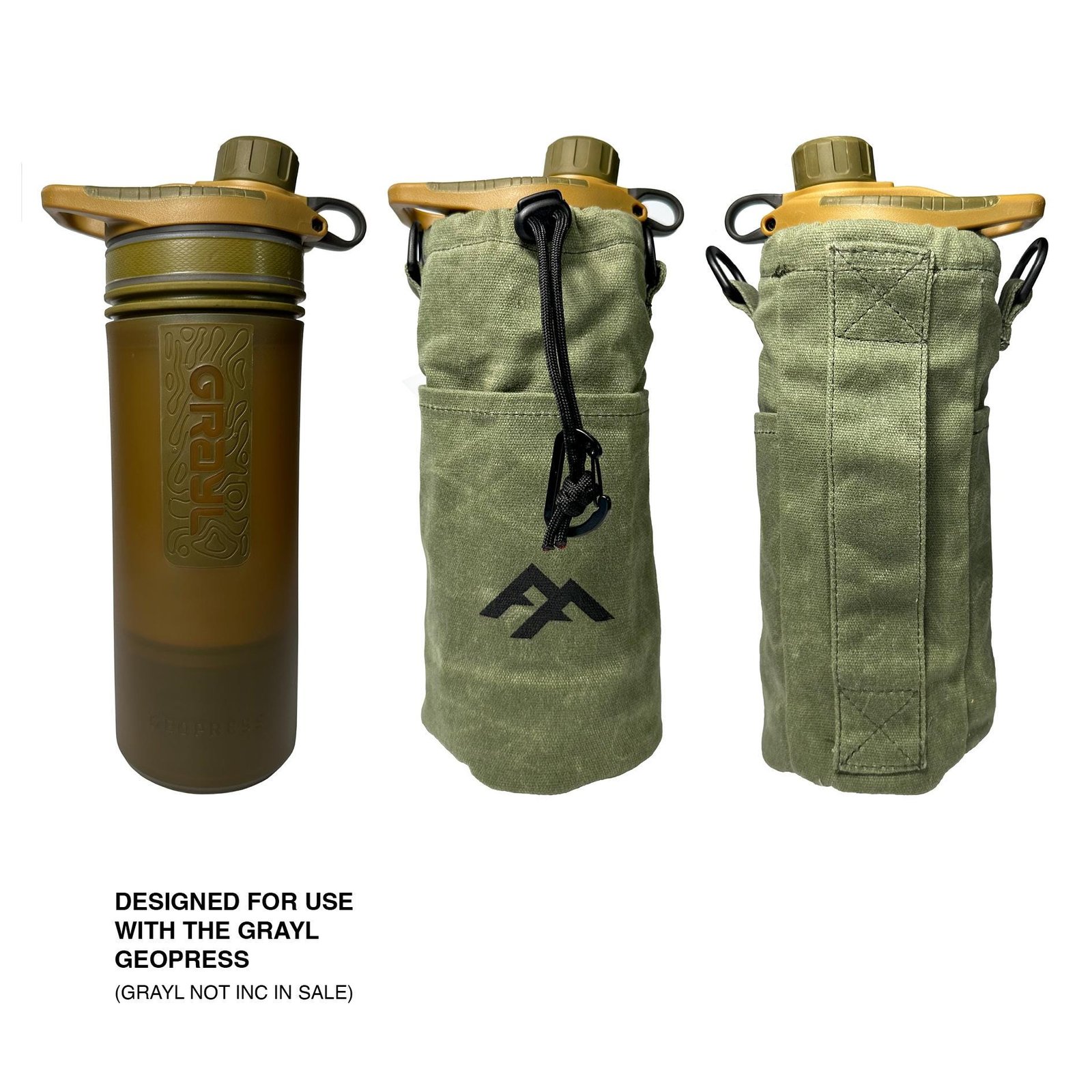 Insulated Bottle Bag Pouch | Compatible with Grayl® Water Filters, and 32oz Bottle & Nesting Cup | Handmade Waxed Cotton Canvas Boiled Wool