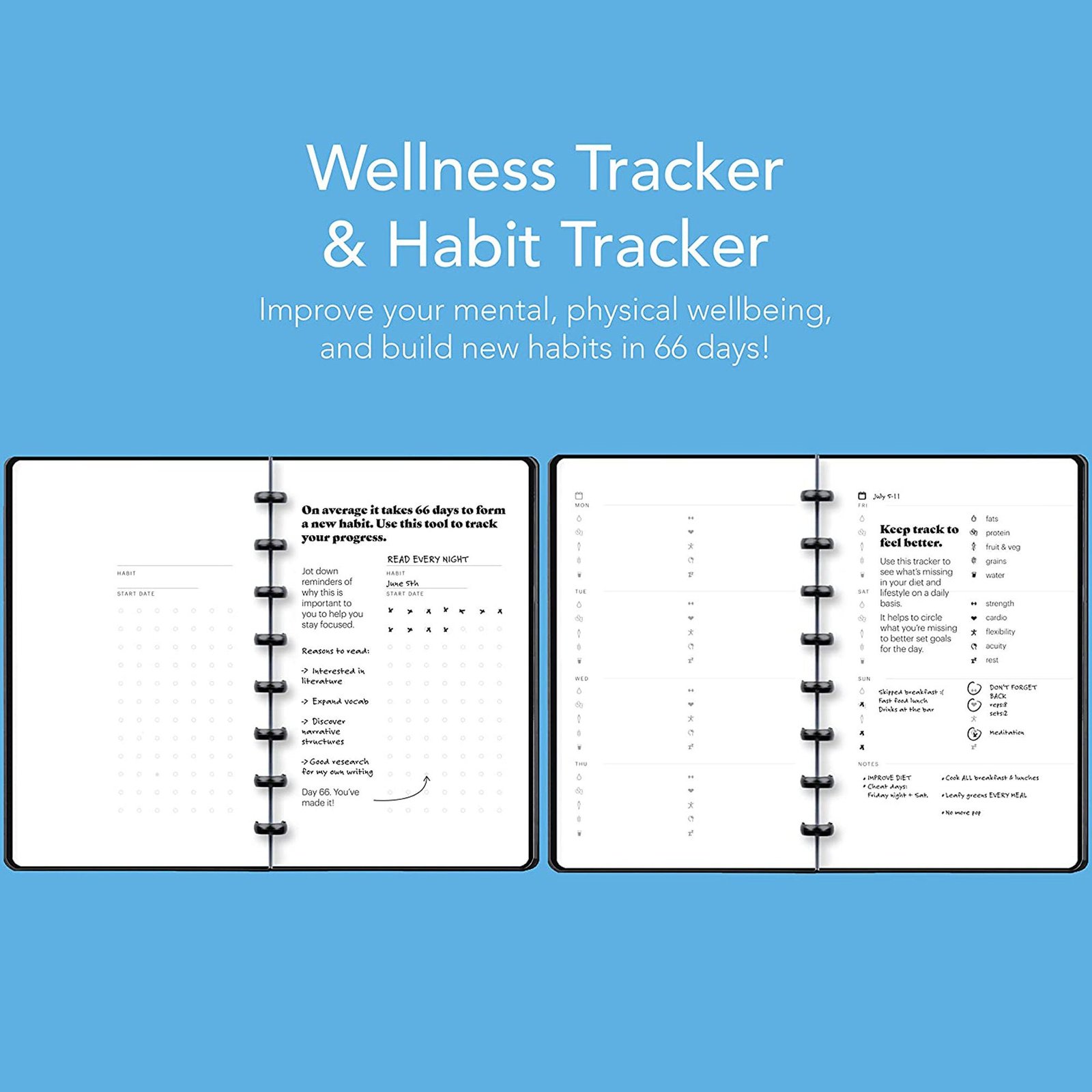 – Visually track your progress across 66 days with the Habit Tracker