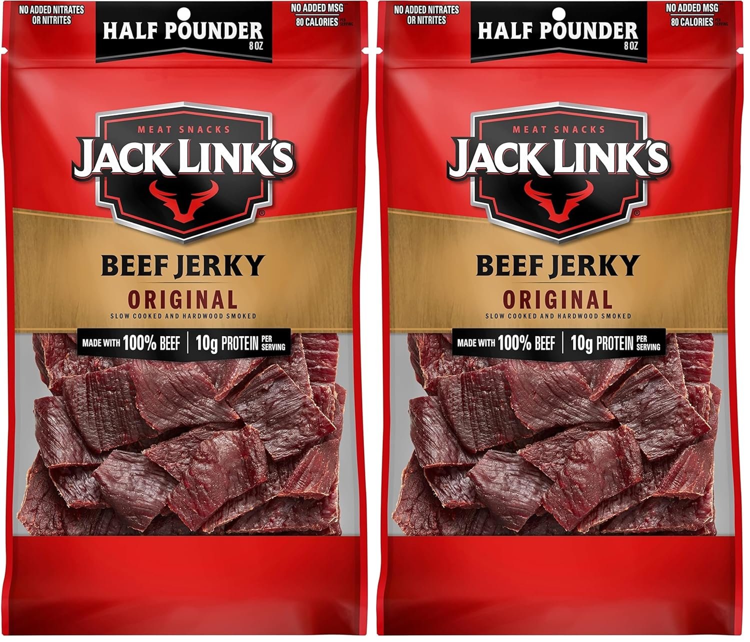 Jack Link's Beef Jerky, Original, Half Pounder Large Jerky Bag – Flavorful Meat Snack, Ready to Eat Protein Snacks with 10g of Protein per Serving, Made with 100% Beef