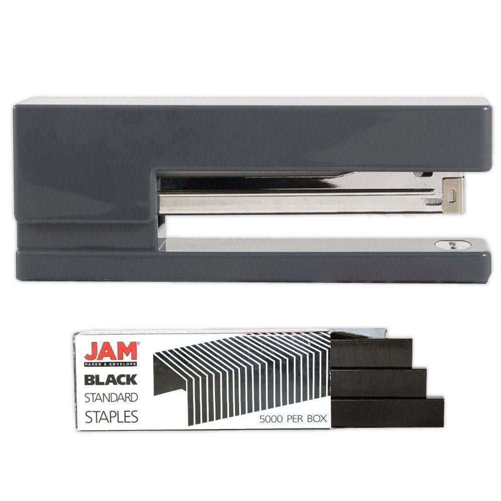 JAM Paper Office & Desk Set, 1 Gray Stapler & 1 Black Staples, 2 Pack