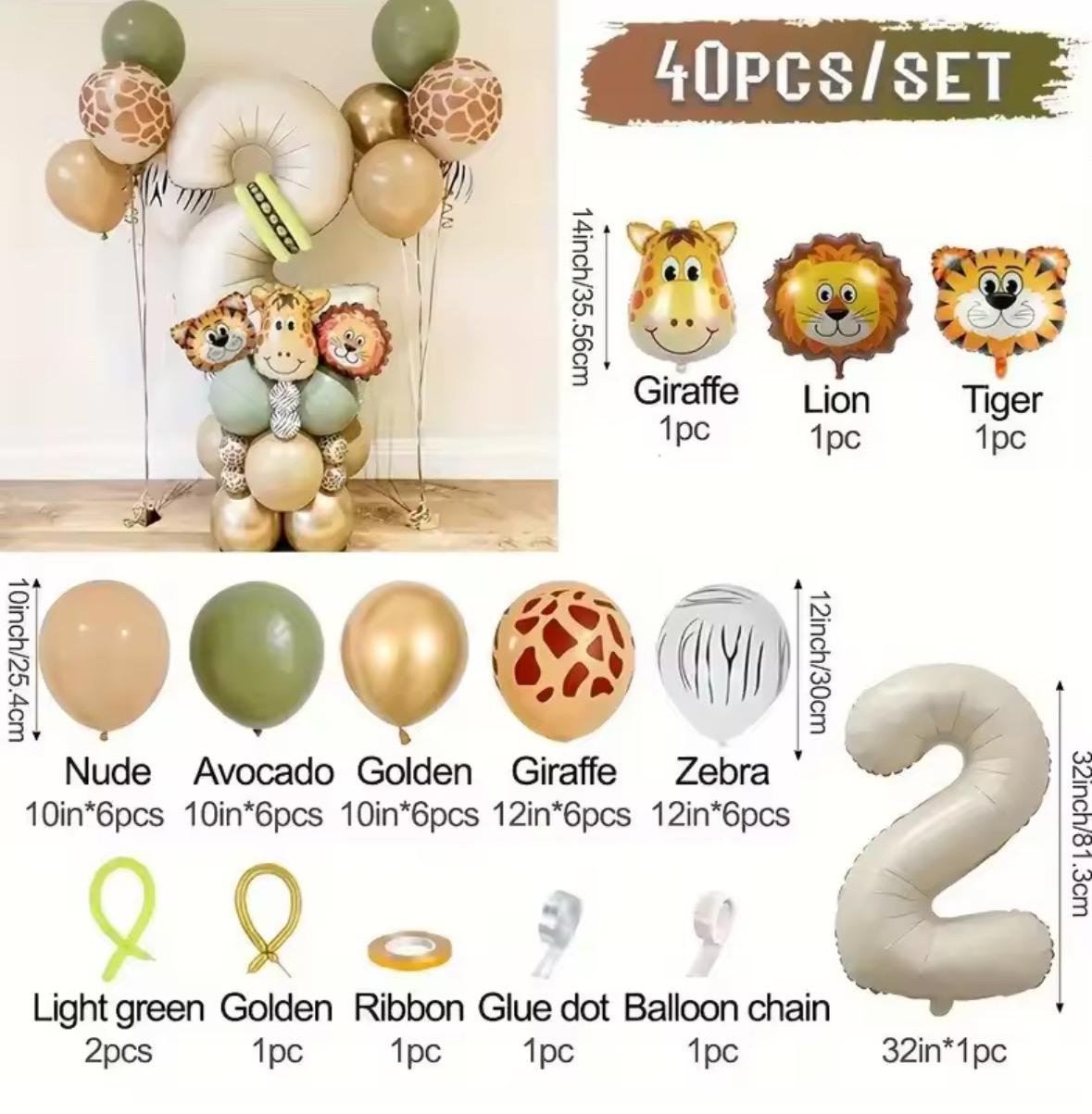 Jungle Safari Balloon Set – 40pcs Animal Birthday Party Decorations with Number Balloons 0-9