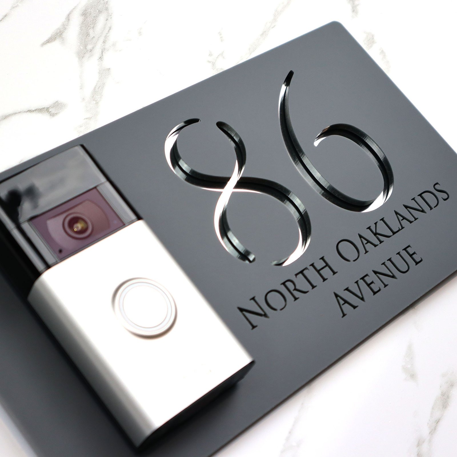 K Smart Sign | Bellissima DB | Ring Nest Video door-bell Laser Cut Matt Dark Gray Anthracite & Silver Mirror Floating House Sign