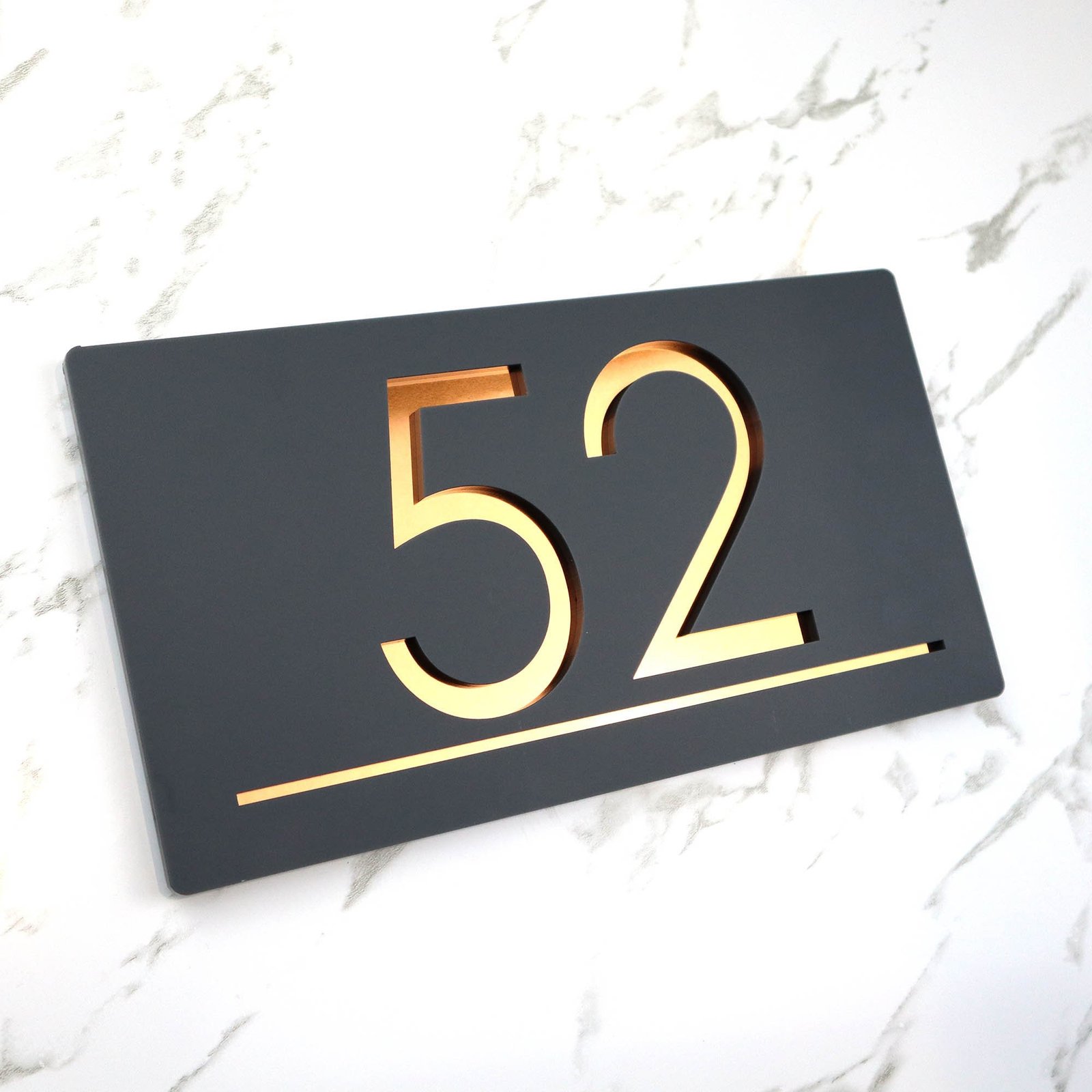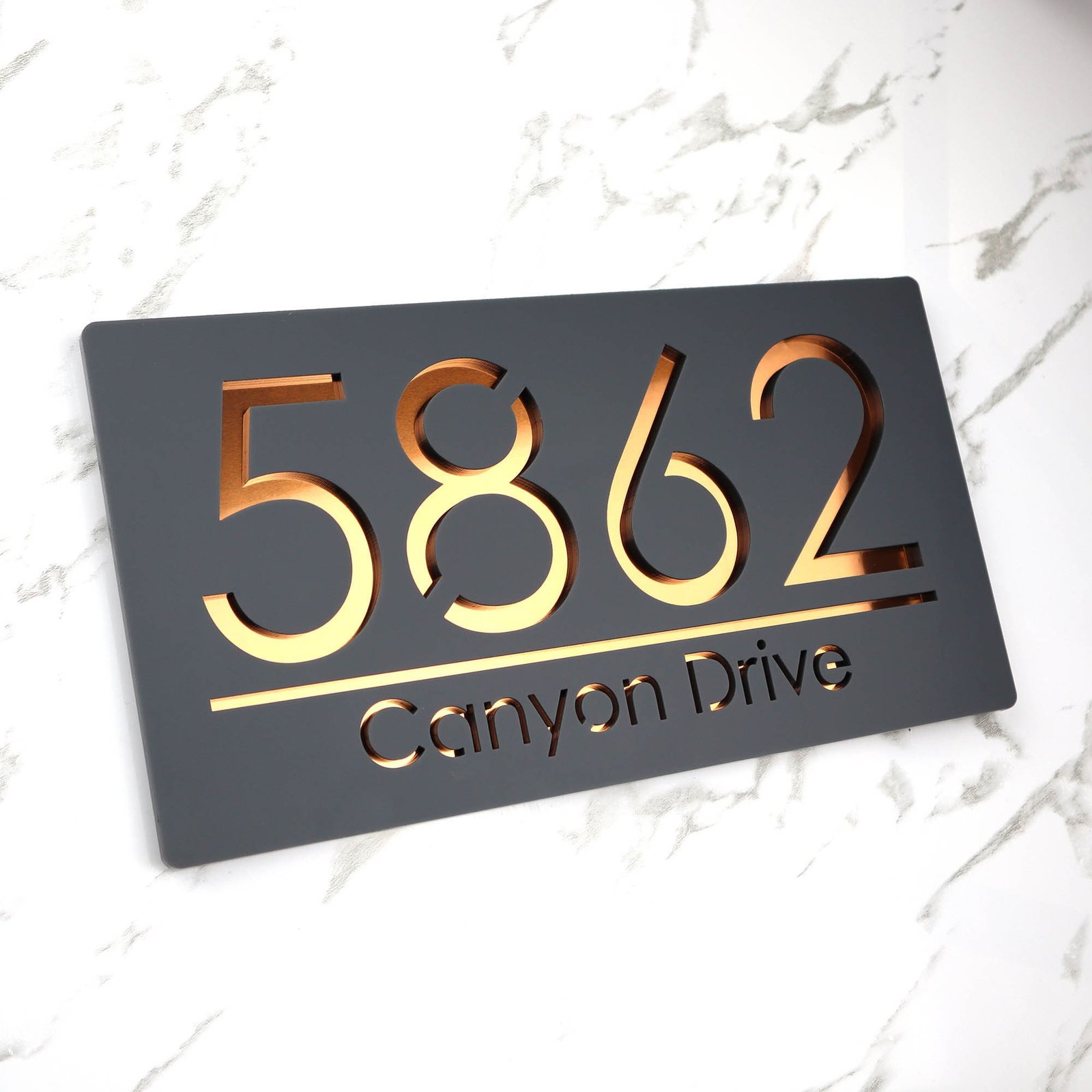K Smart Sign | Bellissima H3 | Laser Cut Matt Dark Gray Anthracite & Copper Mirror Personalised Floating House Sign Plaque | 300mm x 160mm…