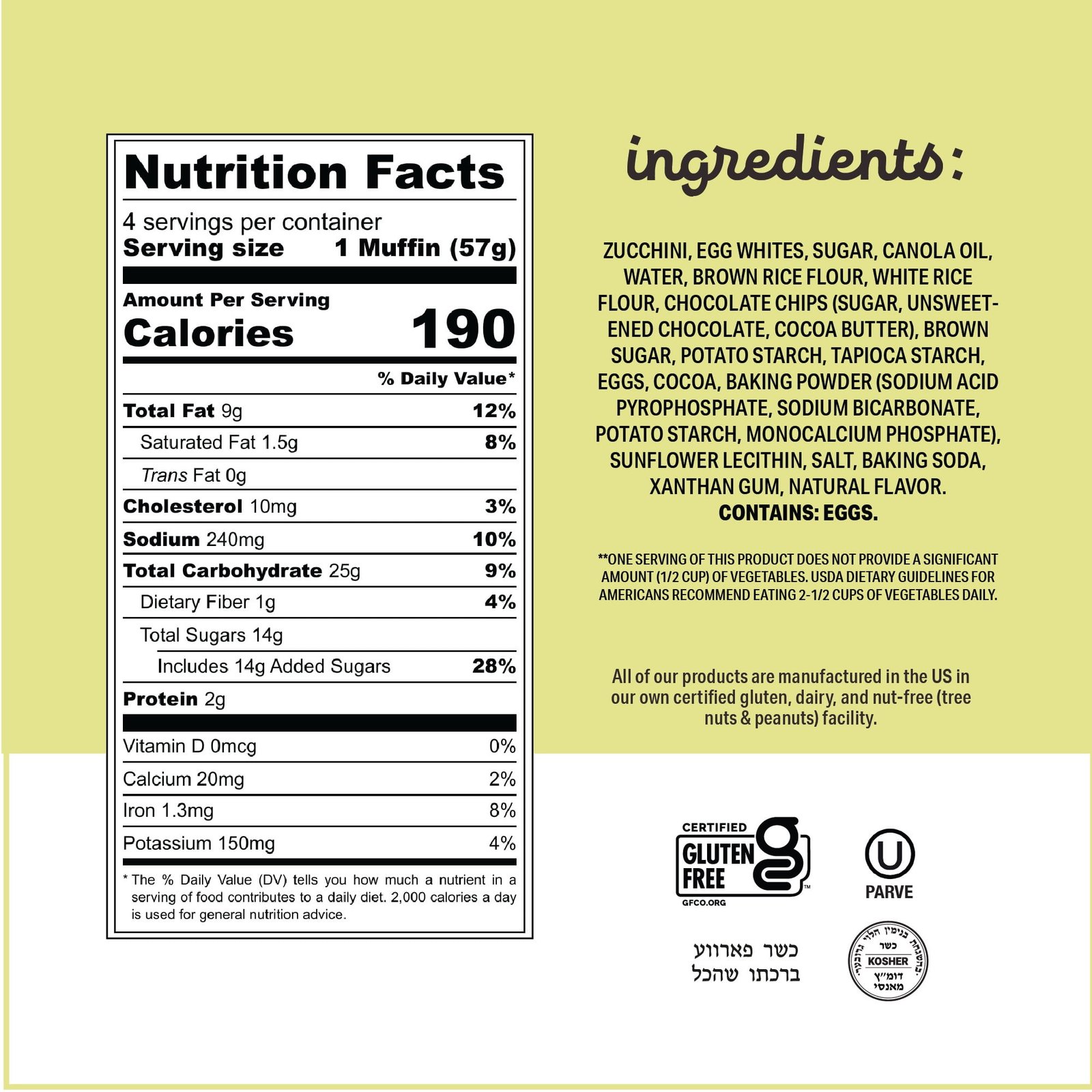 Soft, scrumptious, and surprisingly sneaky, these are a treat for all ages. Baked with real garden zucchini, they’re the perfect way to ease your conscience while indulging your cravings. Individually wrapped and packed with rich chocolate chips, these muffins are an ideal choice for kids, subtly sneaking in a veggie serving trust us, they’ll never know. A family favorite for gluten free breakfast or anytime indulgence.