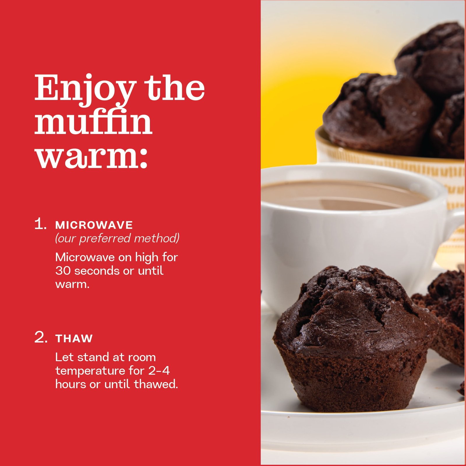 - Indulge in our gluten-free and preservative-free double chocolate muffins, stored frozen for ultimate freshness. With a 4-5 day shelf life outside the freezer, you’ll have plenty of time to enjoy them at your own pace. Our trusted carriers ensure our products spend no more than two days in transit, and we recommend storing them in the freezer upon arrival to keep them at their peak taste and nutrition.