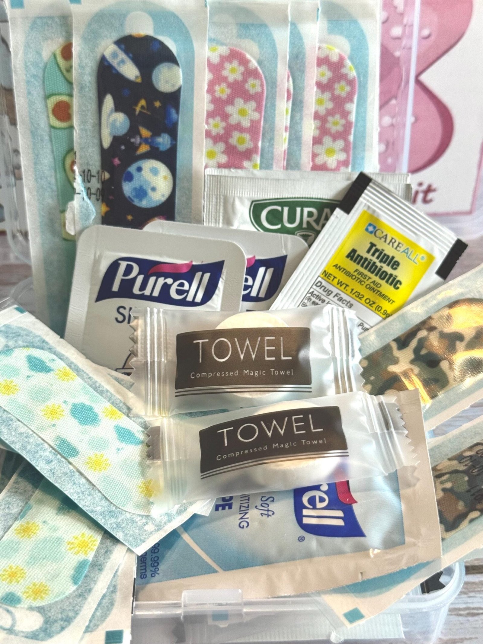 Kid's Large Travel First Aid Kit: Bandaids, Sanitizer, Wipes