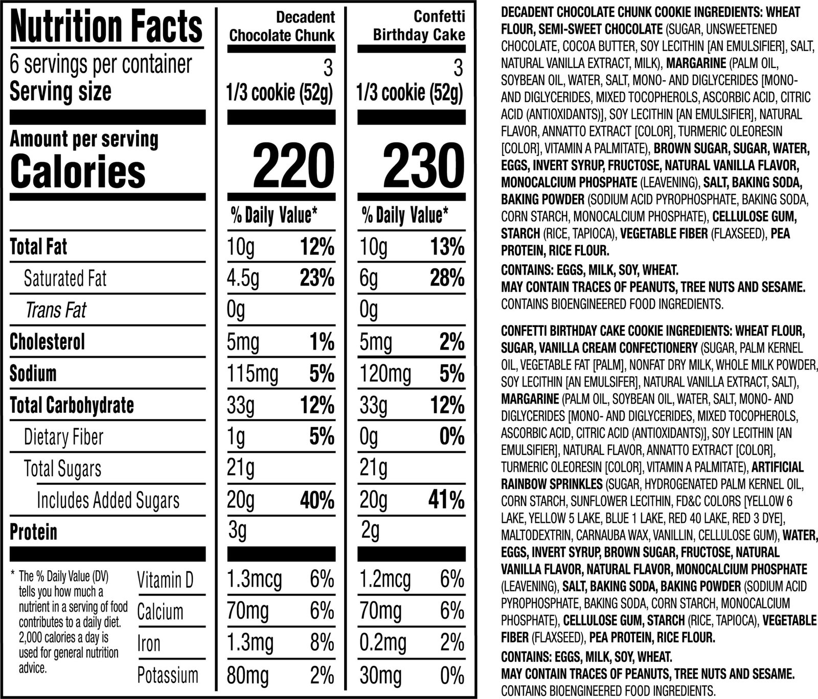 - Two king-size 5.5 oz cookies per package, 1 of each flavor
