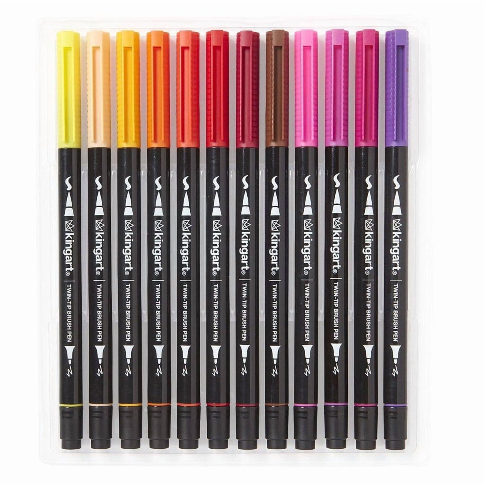 KINGART Pro Twin Tip Brush Markers – 24 Vibrant Colors,