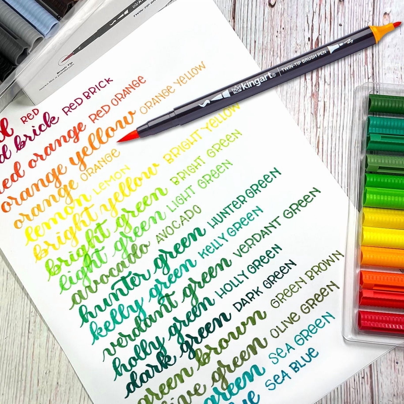 Creative, versatile, vibrant, and durable best describe KINGART® PRO Twin Tip Brush Pens. Create broad strokes, fine lines, and everything in between, simply by changing ends or brush pressure. Our pens are acid-free, non-toxic, and odorless. The caps are color-coded, air-tight, and anti-roll. The ink is water-based and blends easily. Use two or more markers to create unique shades and a colorless blender pen for watercolor effects. use these pens for any art project or inspired moment–and no messy cleanup! Great for Fine art, illustrations, doodling, journaling, hand lettering, calligraphy, and more. Ideal for fine art, brush lettering, faux calligraphy, illustrations, watercolor illustrations, journaling, and more!