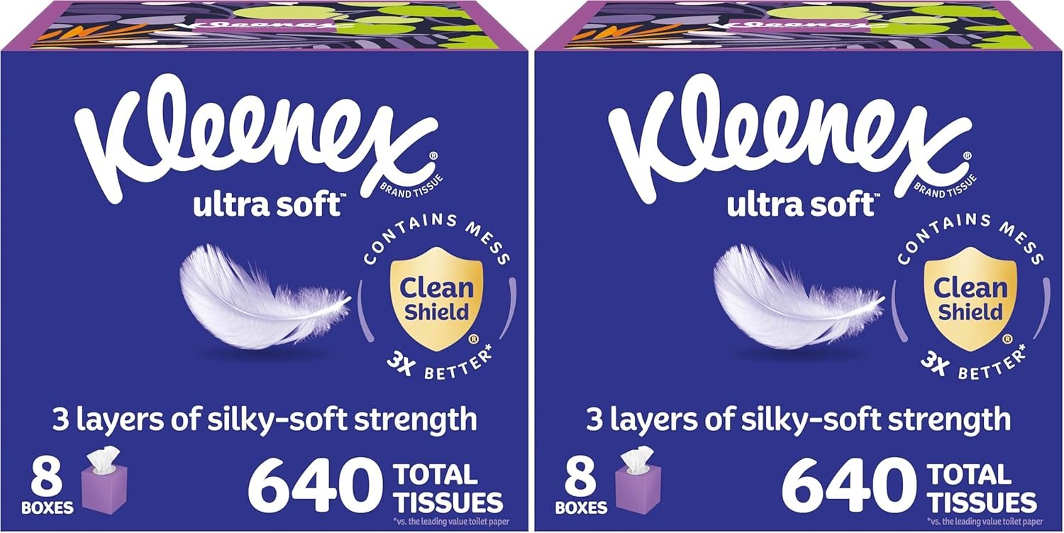 Kleenex Ultra Soft Facial Tissues, 8 Cube Boxes, 80 Tissues per Box, 3-Ply, Packaging May Vary