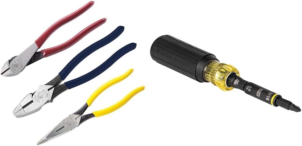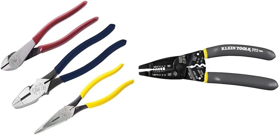 Pliers Tool Kit includes 3 of the most popular pliers: Lineman’s Pliers Cat. No. D213-9NE, Diagonal Cutters Cat. No. D2288, and Long Nose Side Cutters Cat. No. D2038