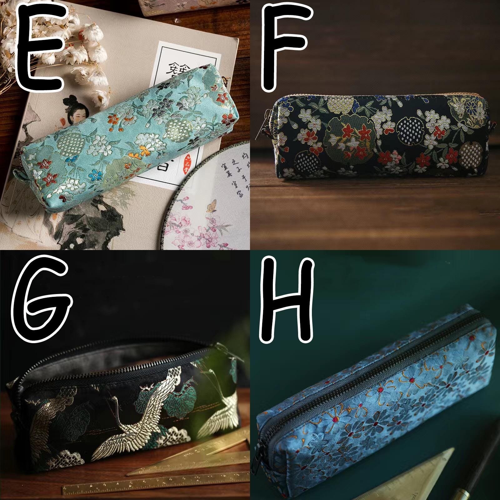 Knitted satin pencil case, large capacity stationery bag, vintage artistic pencil case, Japanese cloth and style pencil case, student gift