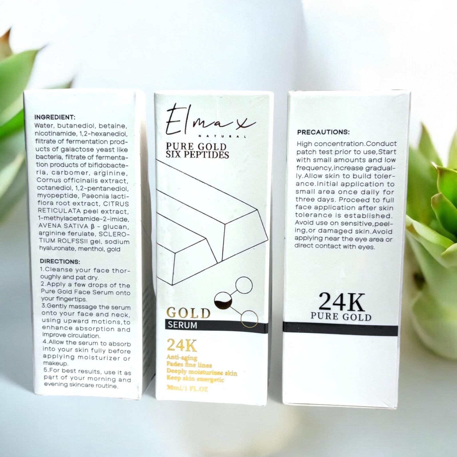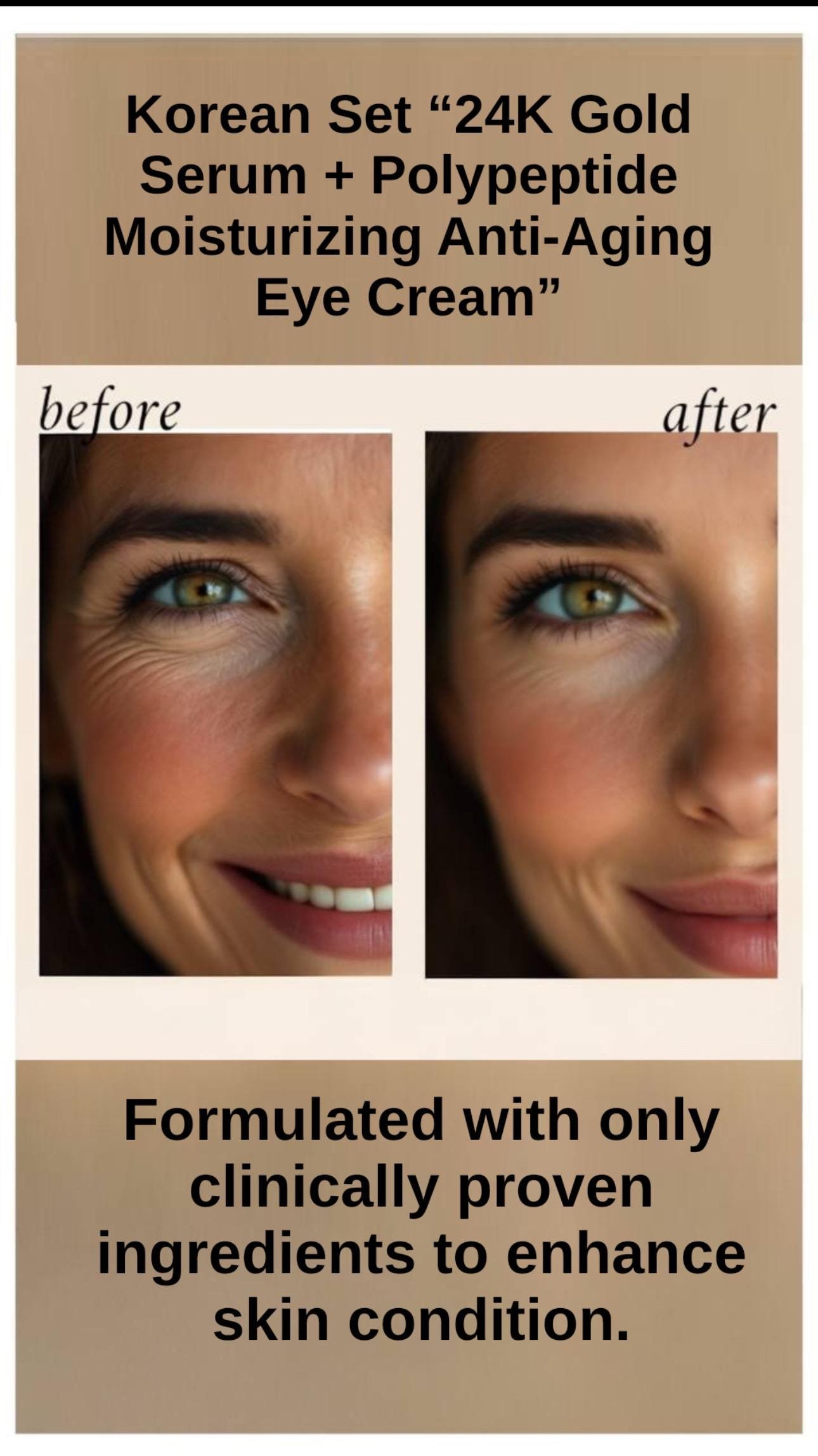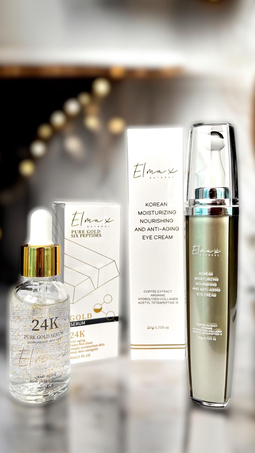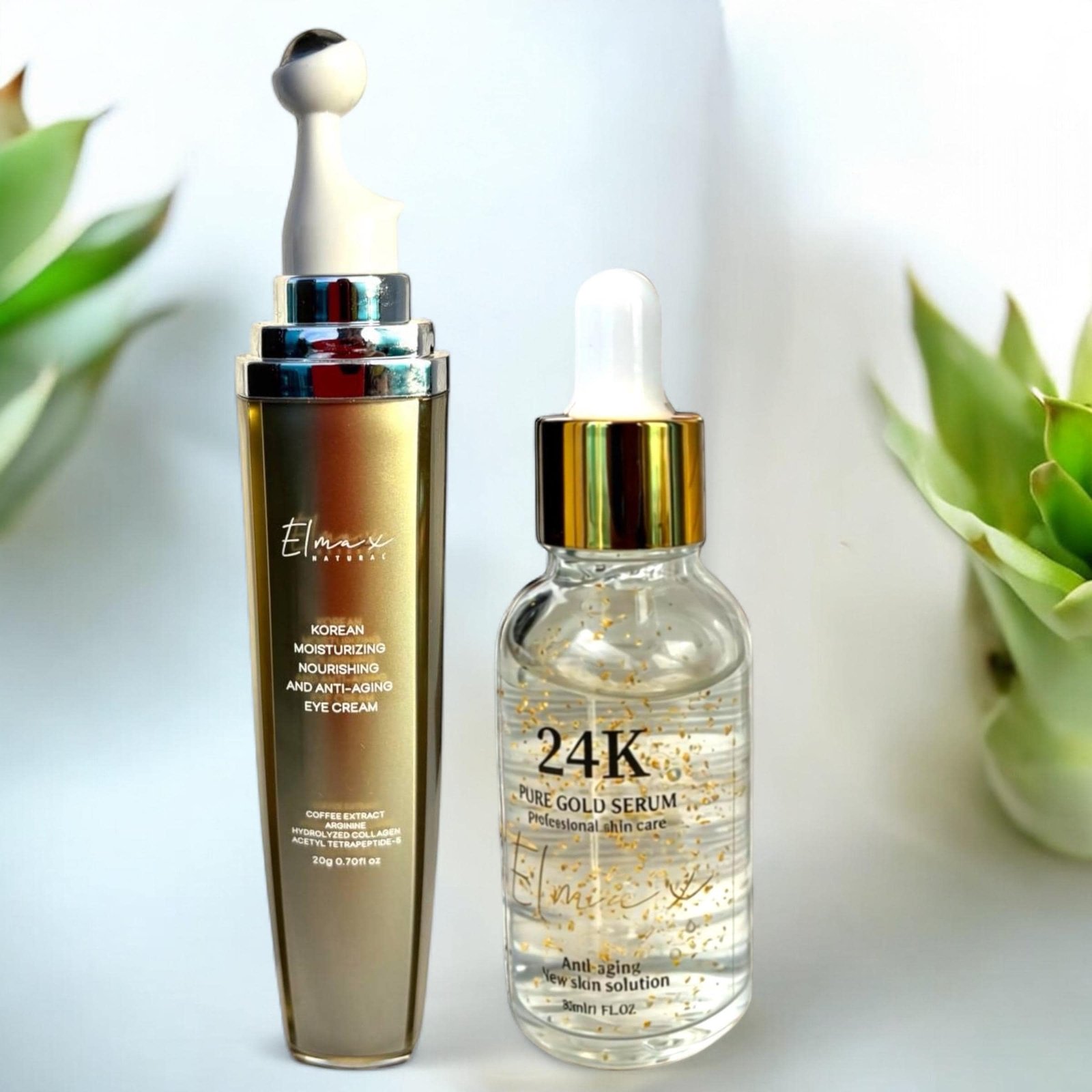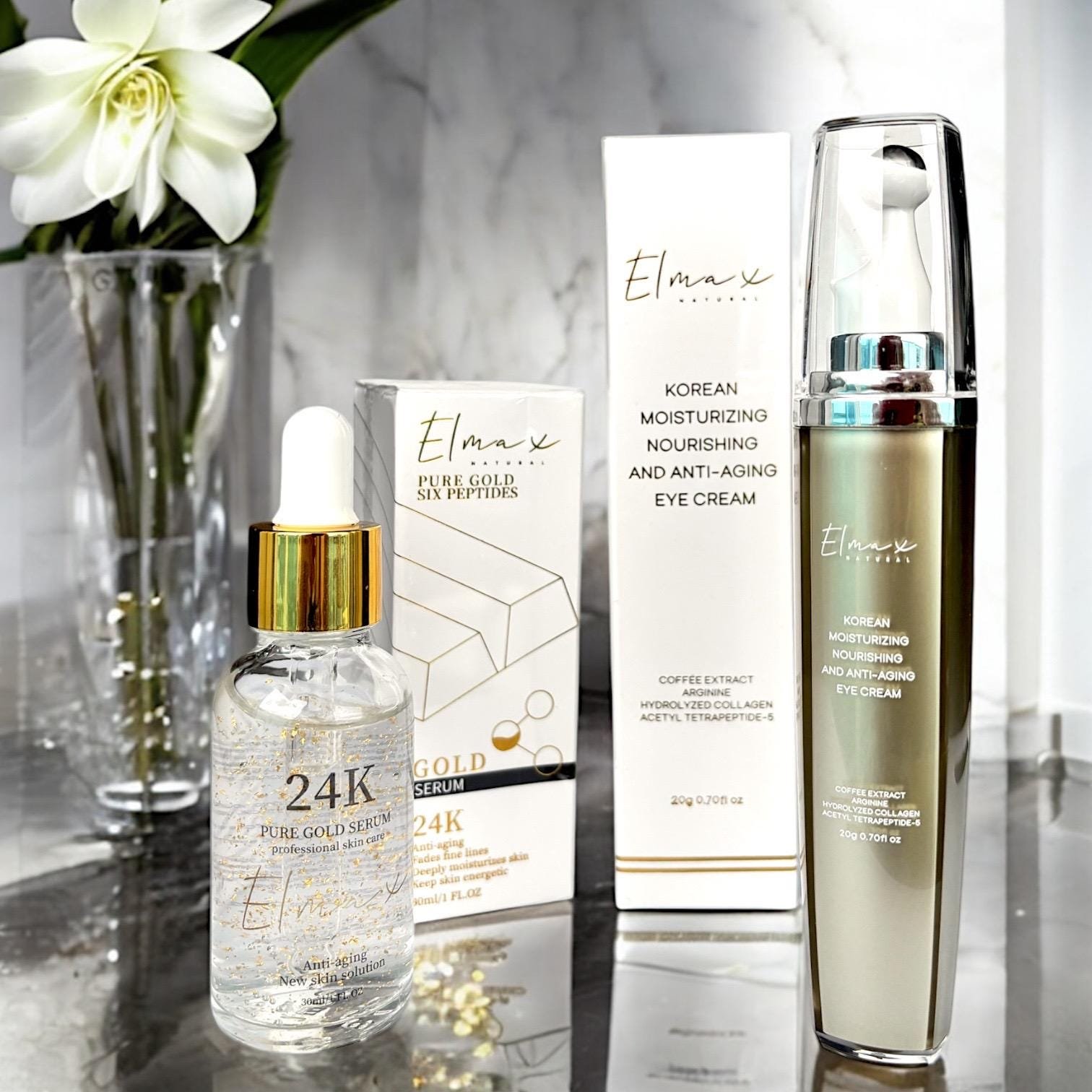 Korean Luxury Skincare Set. 24K Gold Serum + Polypeptide Moisturizing Anti-Aging Eye Cream