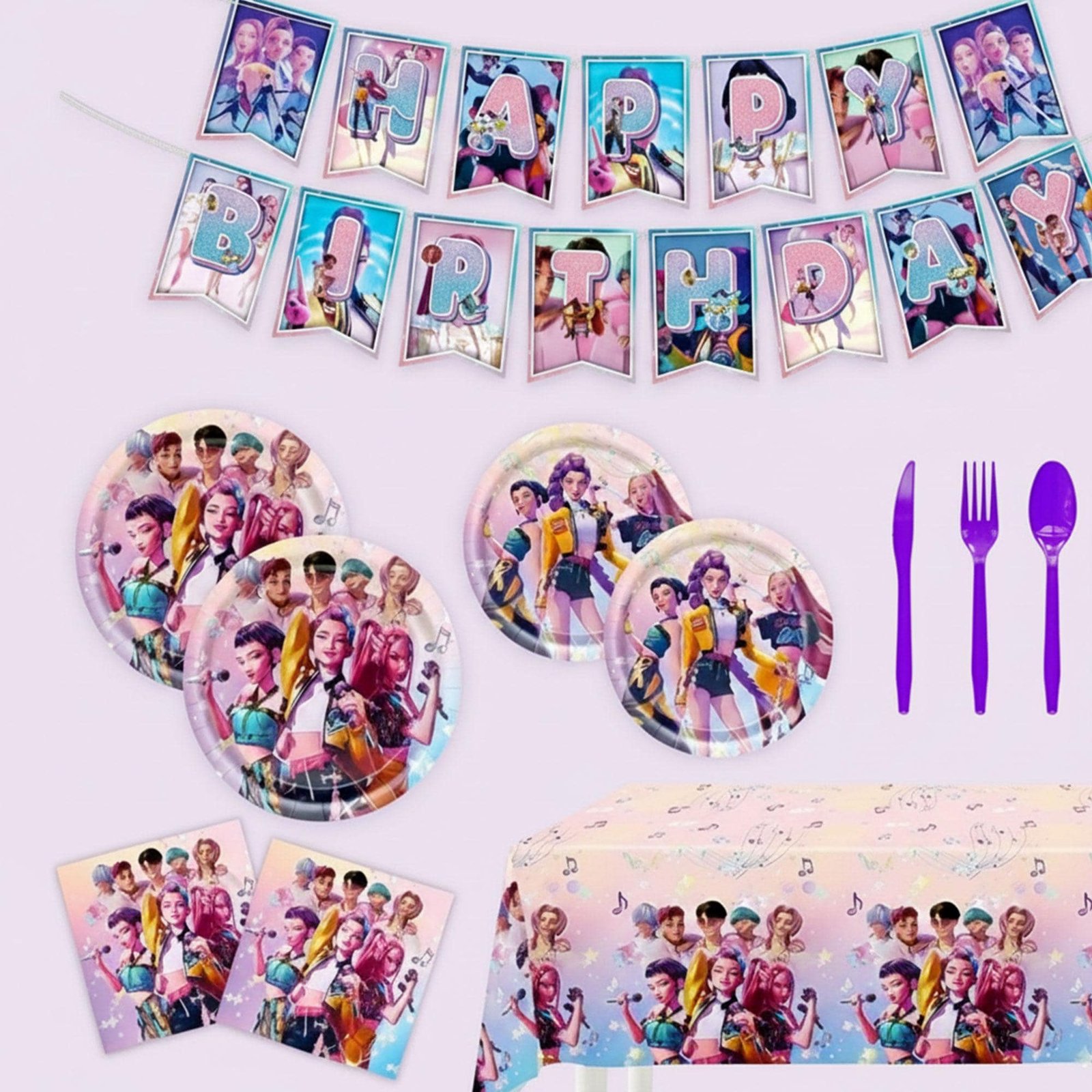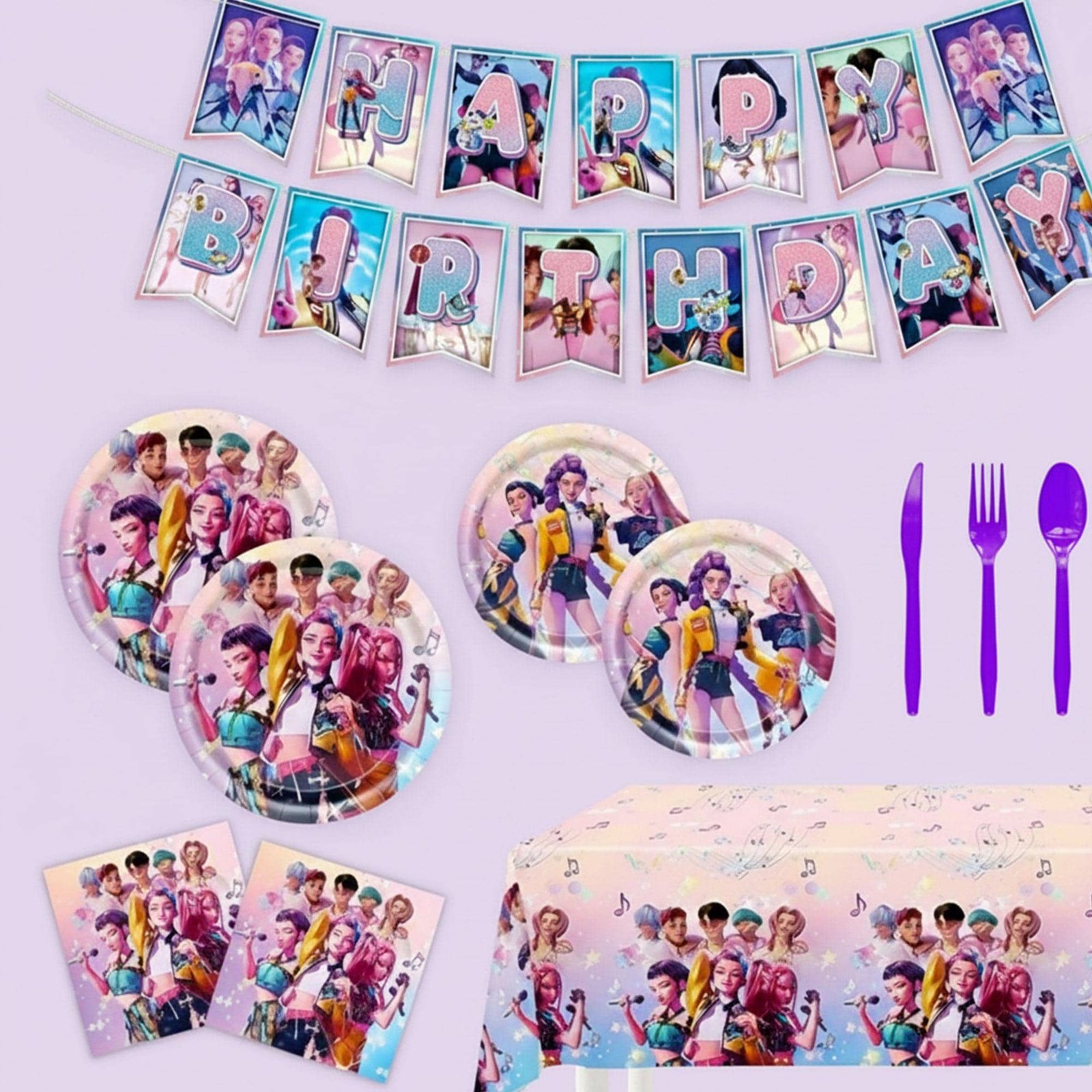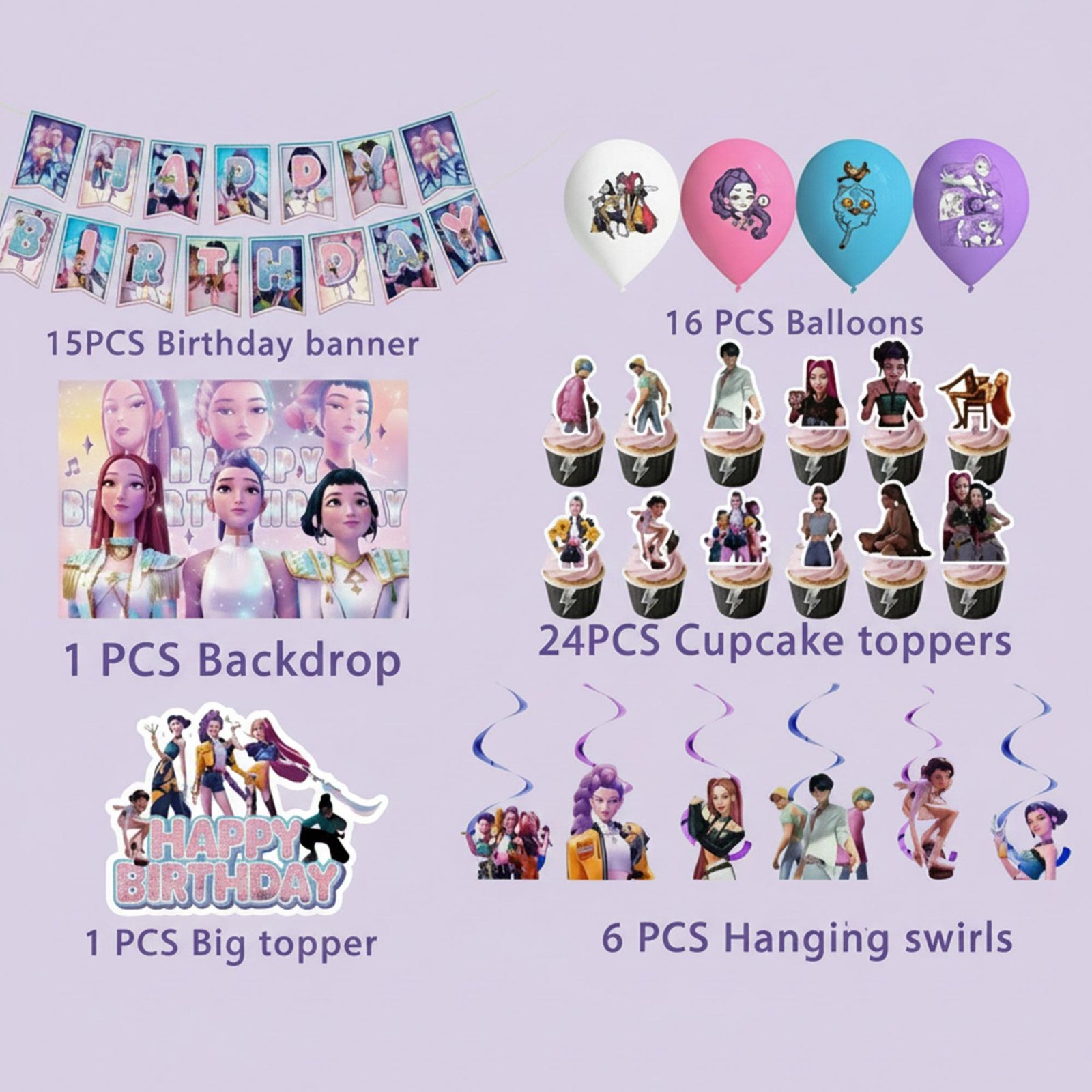 Kpop Demon Hunters Birthday Decor – Demon Hunters Banner, Balloons, Cake & Cupcake Toppers | Demon Hunters Supplies | Birthday Supplies