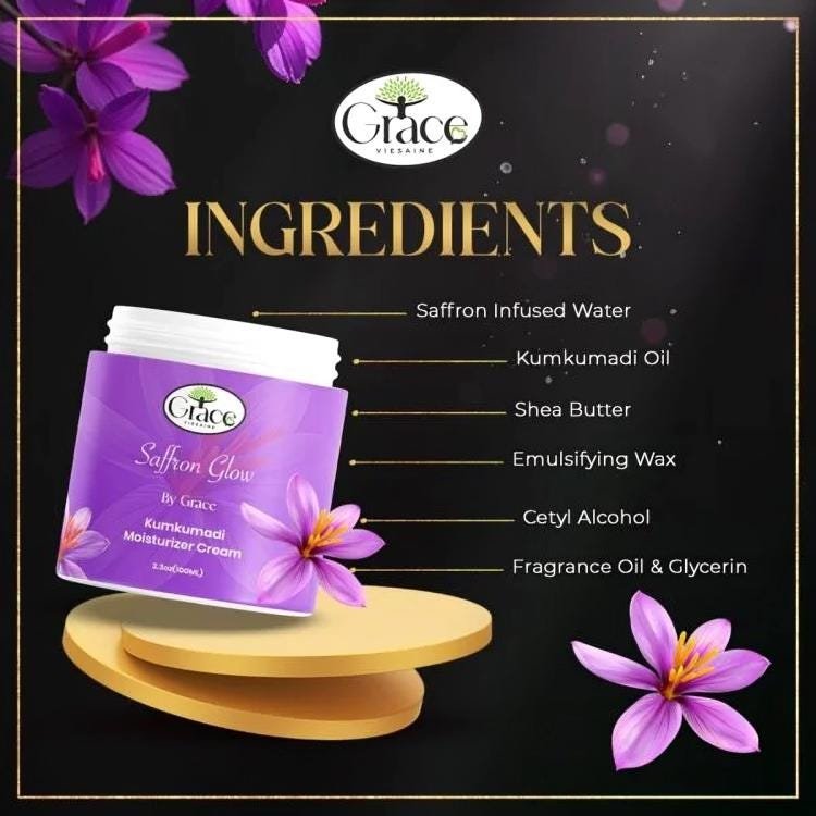 Kumkumadi Moisturizer – Saffron Glow | Natural Daily Cream | Gentle Hydration & Radiance by GraceVieSaine