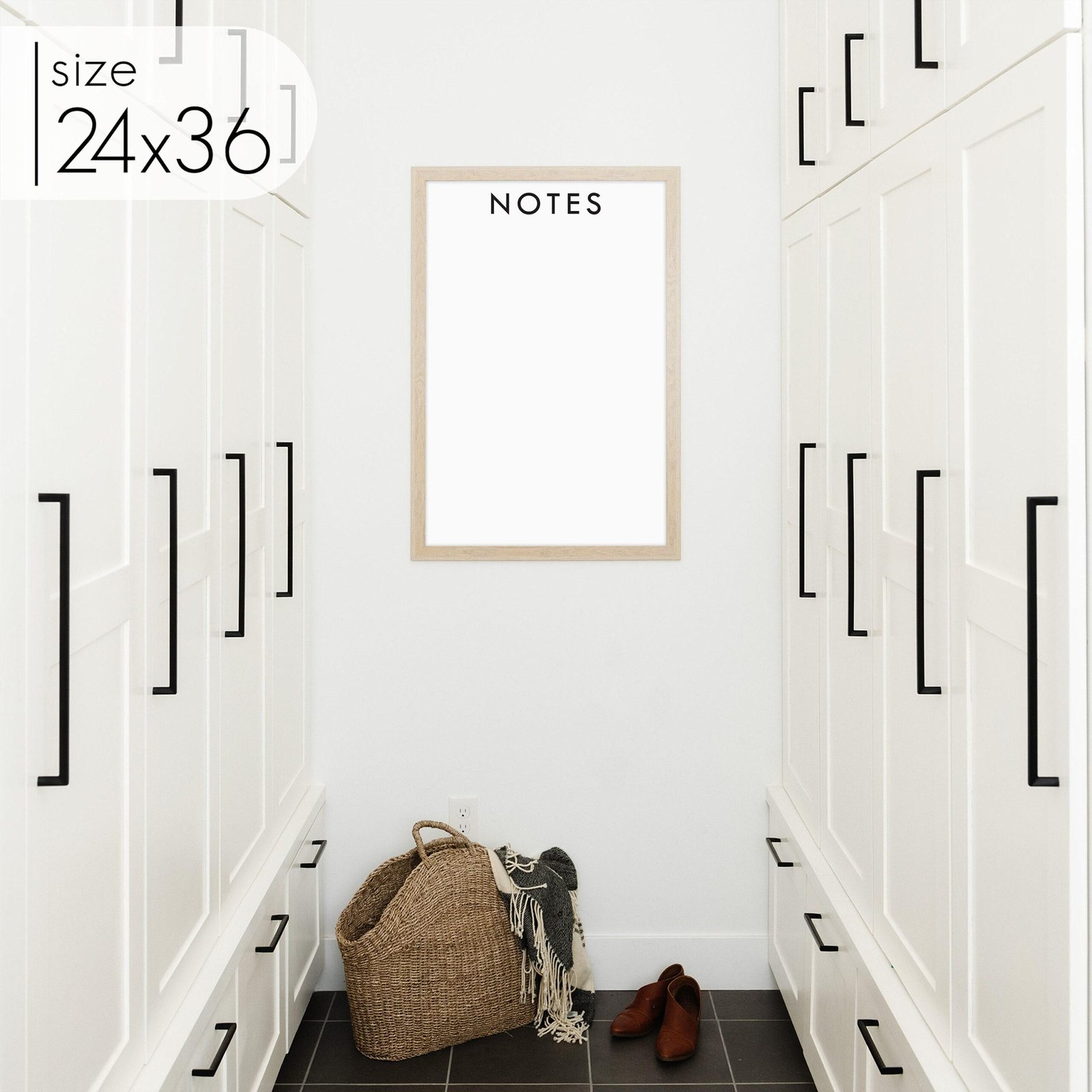 Introducing our Framed Dry Erase Notes Board, the perfect solution for capturing important reminders and messages. This versatile board features a customizable title, allowing you to keep it as “Notes” or personalize it to suit your specific needs. Stay organized and keep track of your important notes with the convenience of a dry erase board. Jot down reminders, to-do lists, or important messages, and easily update or erase them as needed. For enhanced functionality, you have the option to upgrade to a magnetic dry erase board. Attach important papers, documents, or even cherished photos directly to the board, creating a centralized and versatile display area. Invest in our Framed Dry Erase Notes Board and experience the benefits of efficient organization and personalized functionality. Simplify your life, enhance your productivity, and stay on top of your tasks with ease. Make a statement with a customizable or magnetic dry erase board that fits perfectly into your home or office decor.