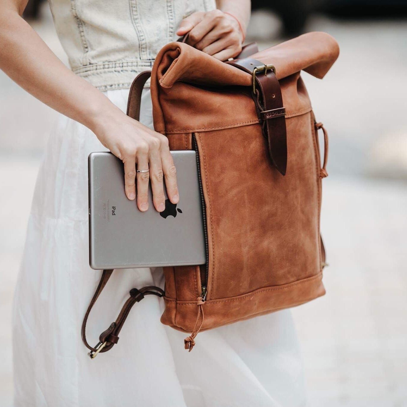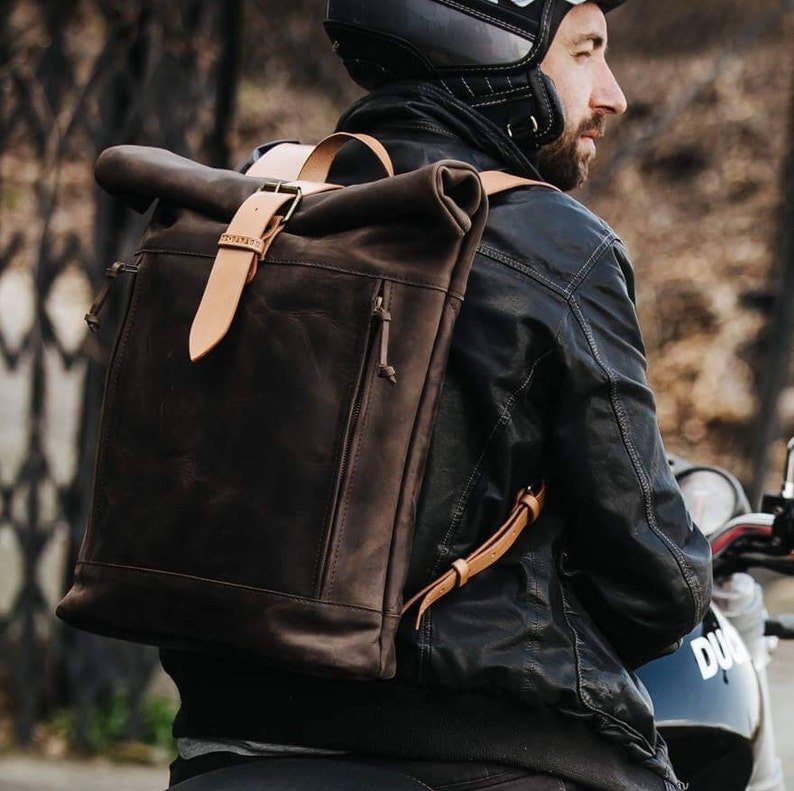 Leather backpack Computer backpack Roll top backpack by Kruk Garage Christmas gift