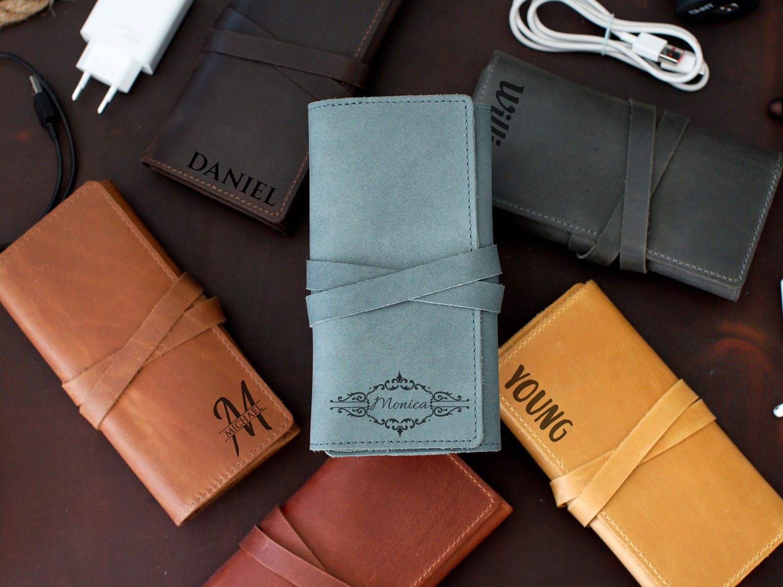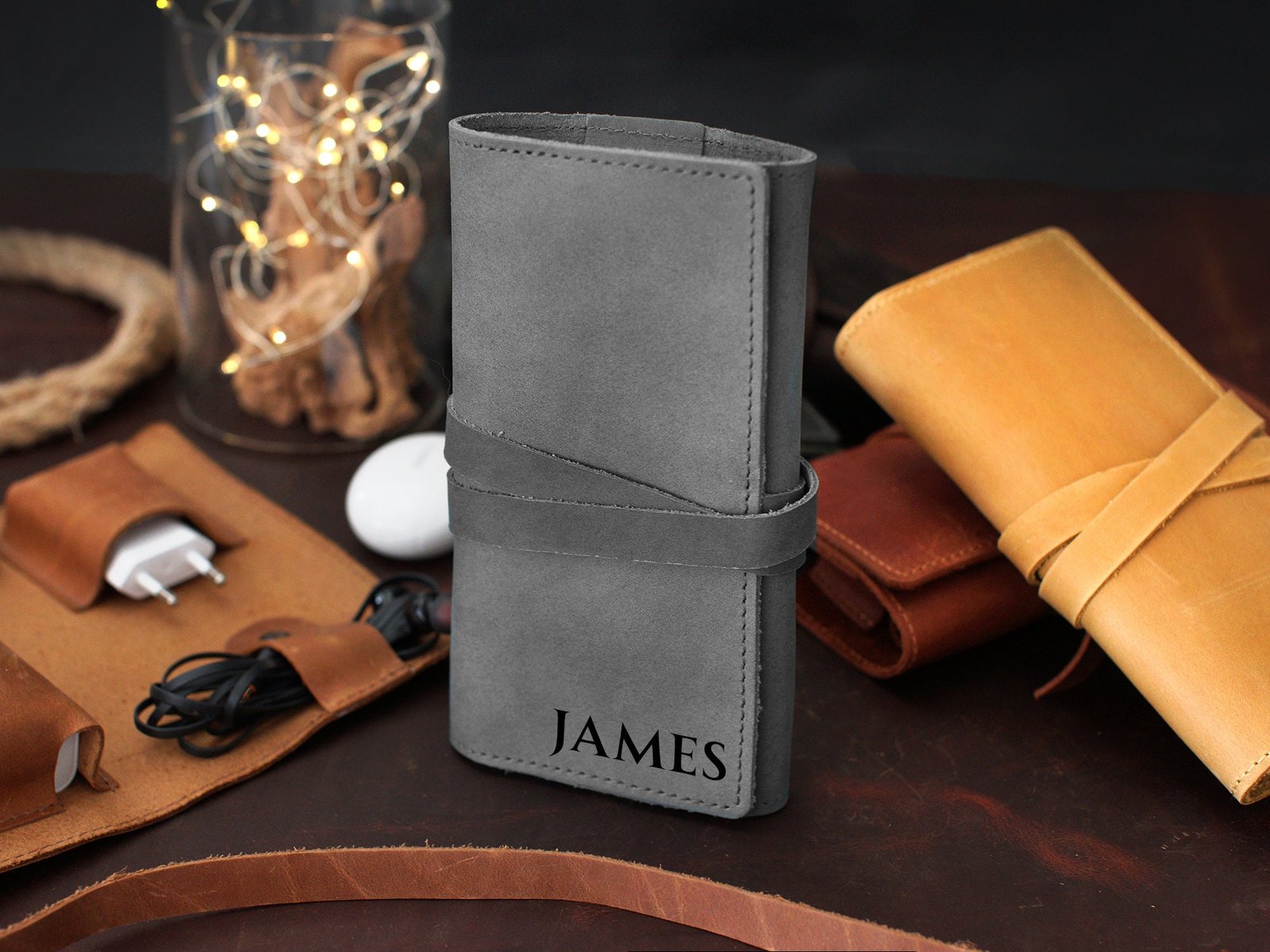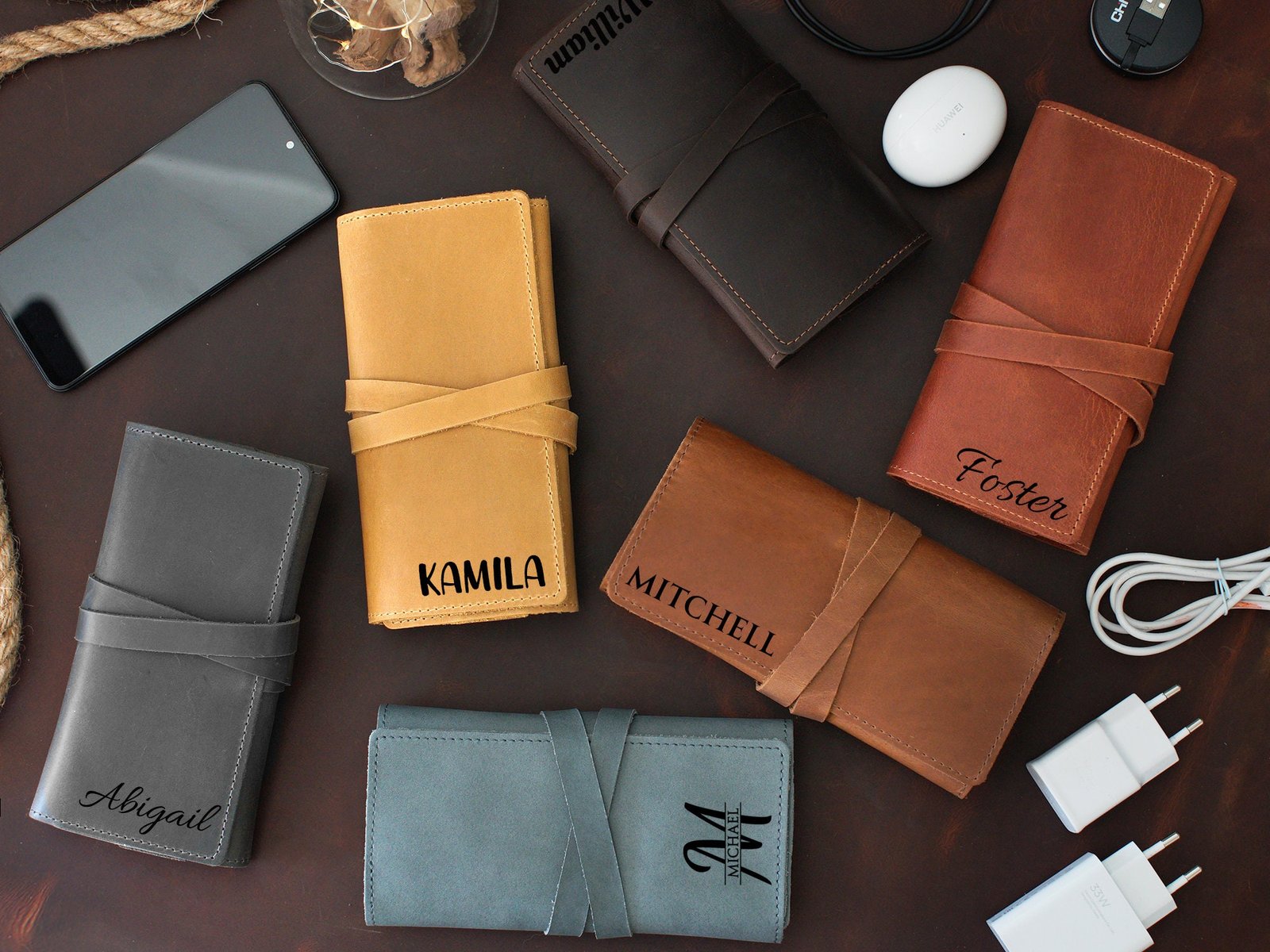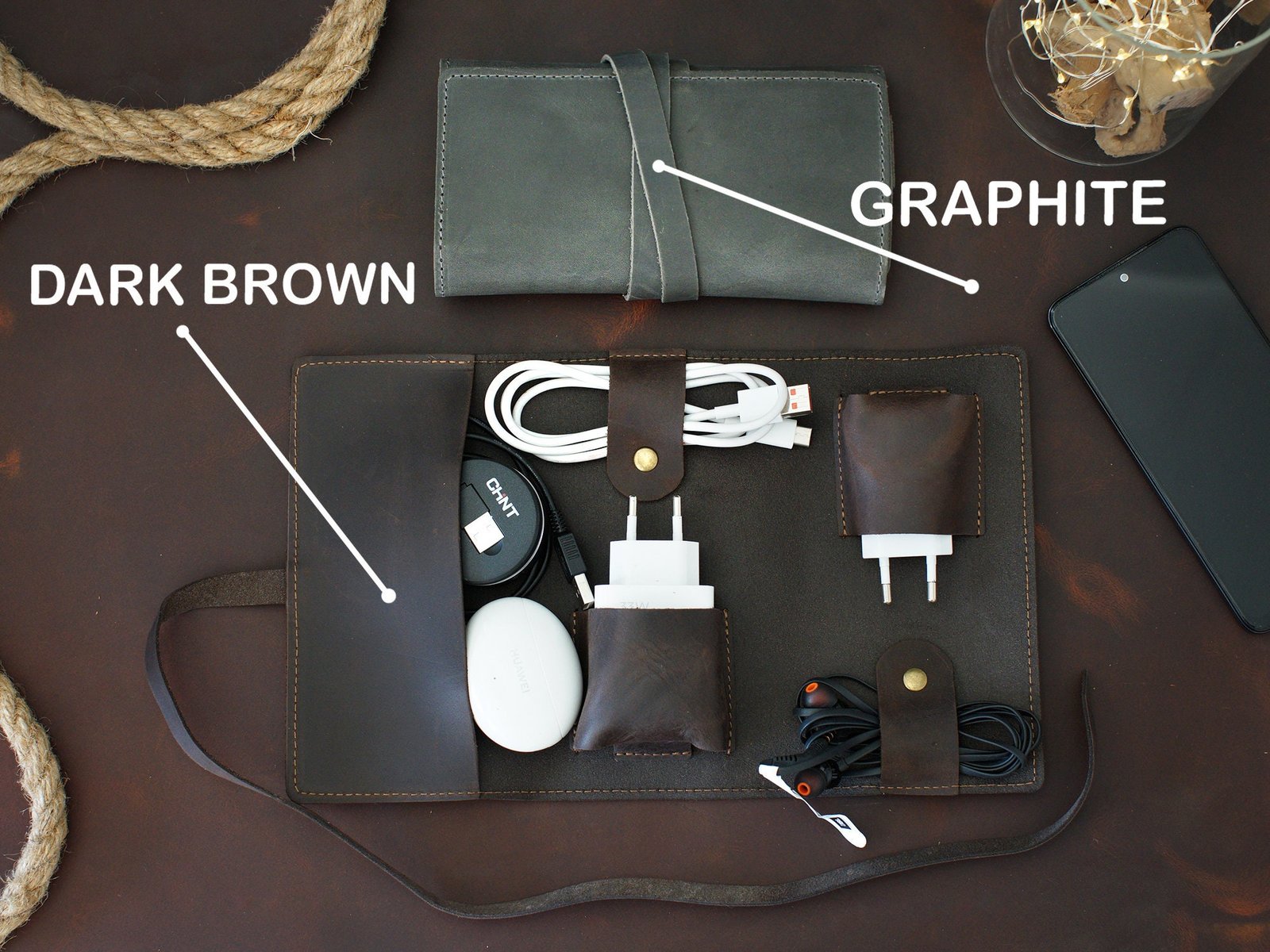 Leather Organizer Charger Bag, Storage Case for Chargers & Headphones, Gift for Him, Travel Cord Storage Personalized, Birthday Gifts