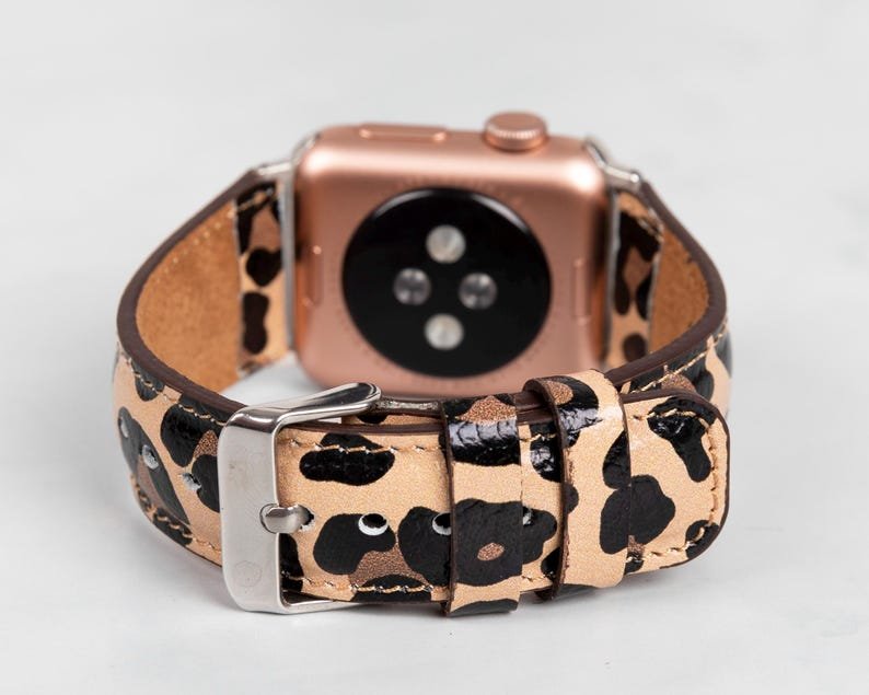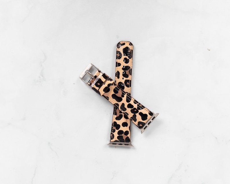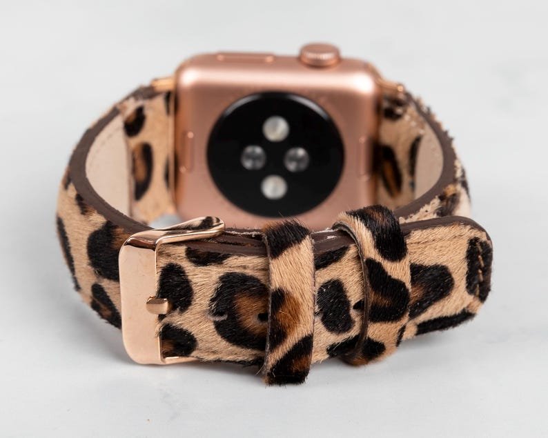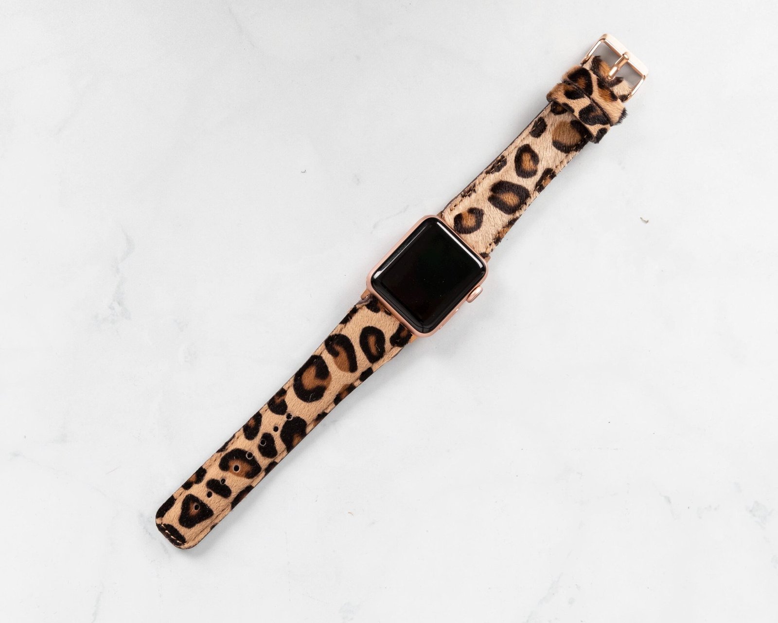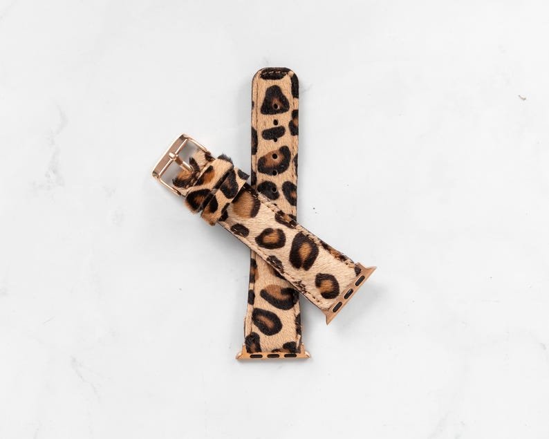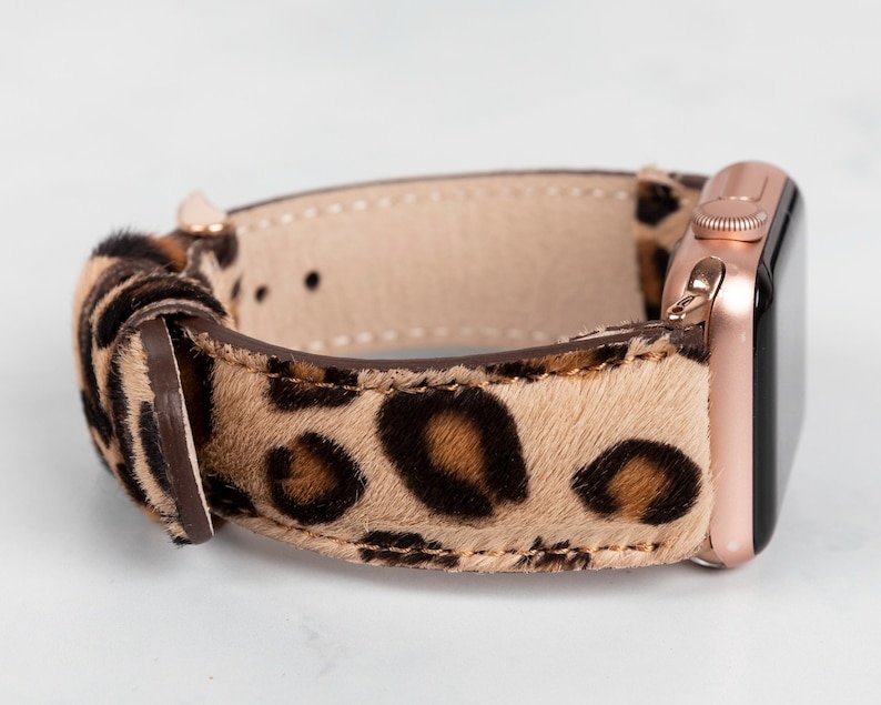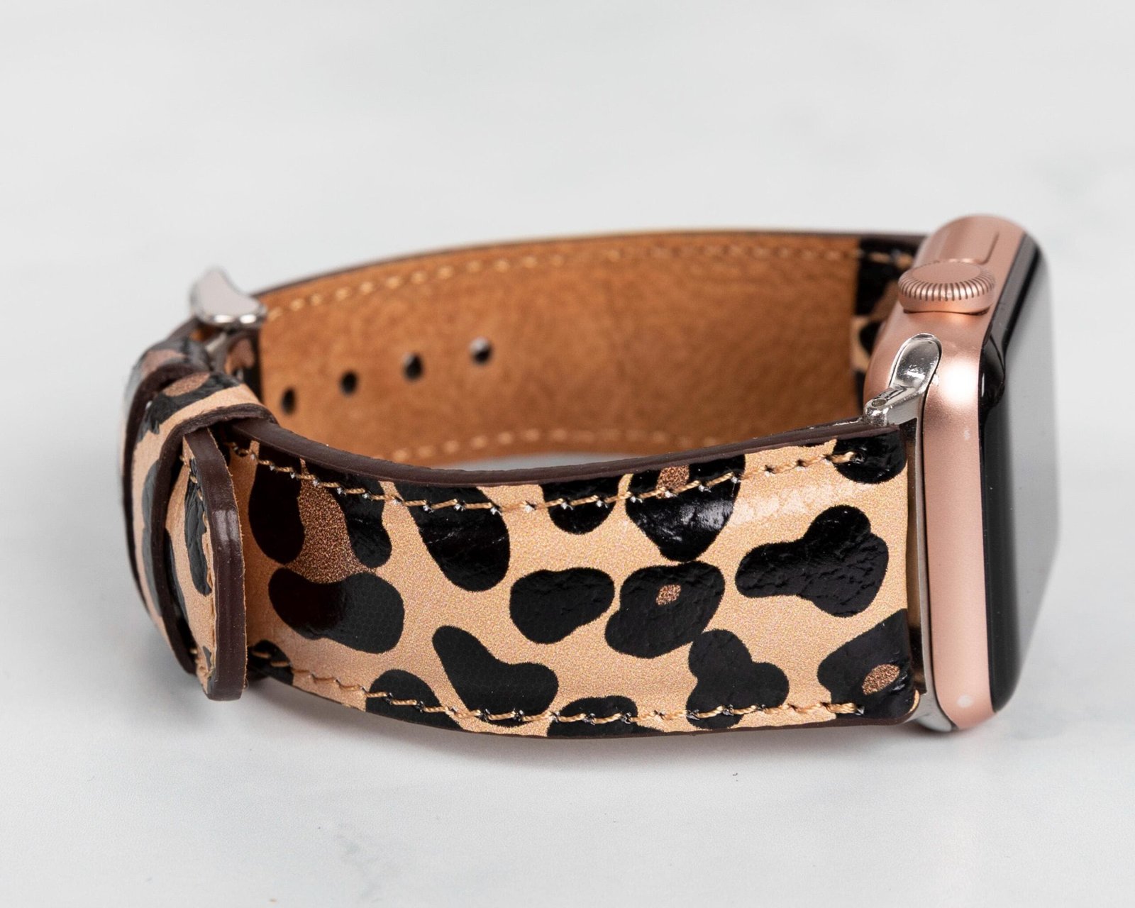 Leopard Leather Apple Watch Band for women- Unique Gift Idea, iWatch Series 4-5-6-7-8-9-10 SE and SE gen 2, Ultra, Anniversary Birthday Gift