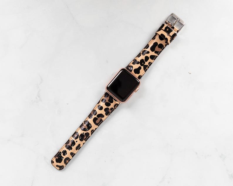 Leopard Print Leather Apple Watch Band, Handmade Straps