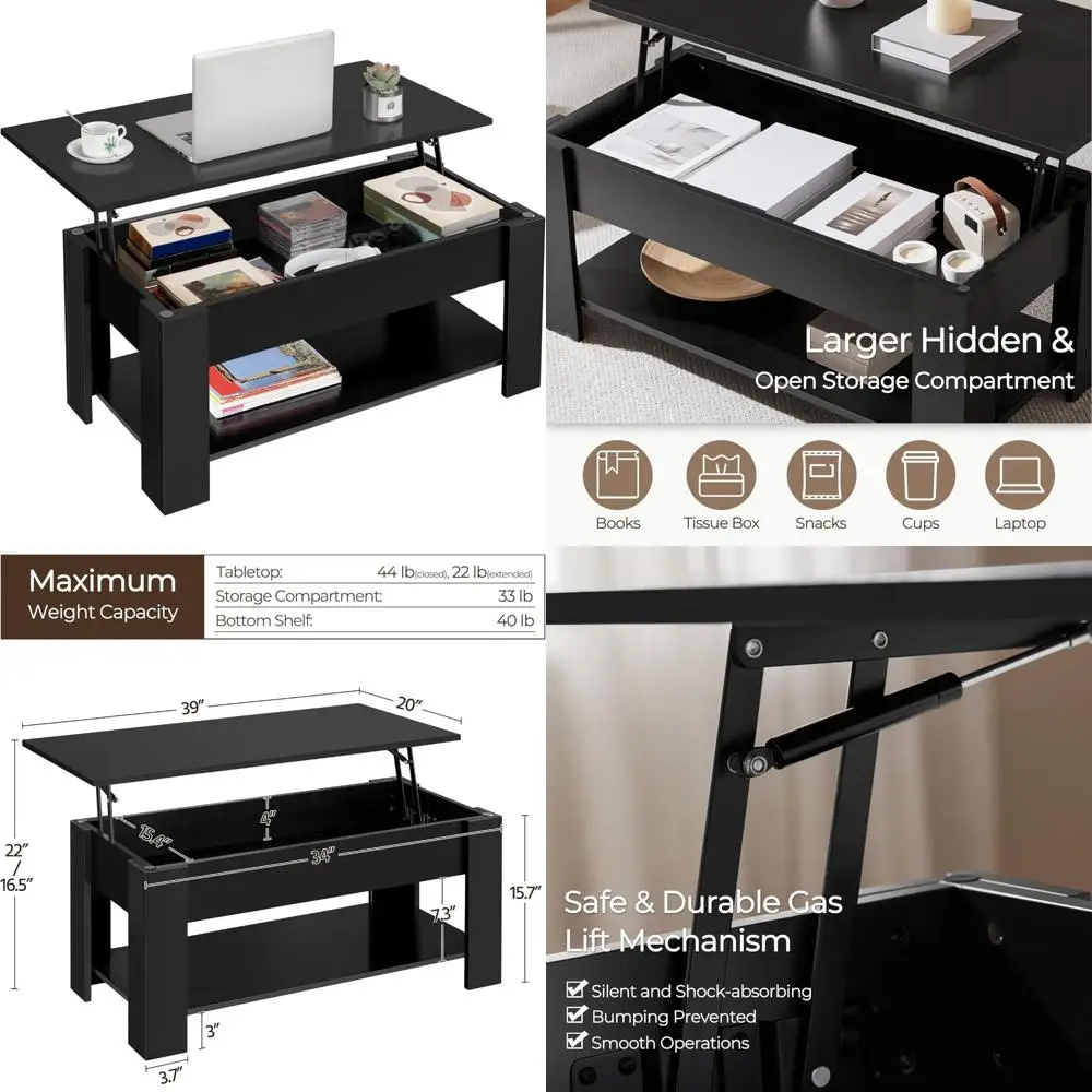 lift top wooden coffee table with large hidden storage shelf for living room dining
