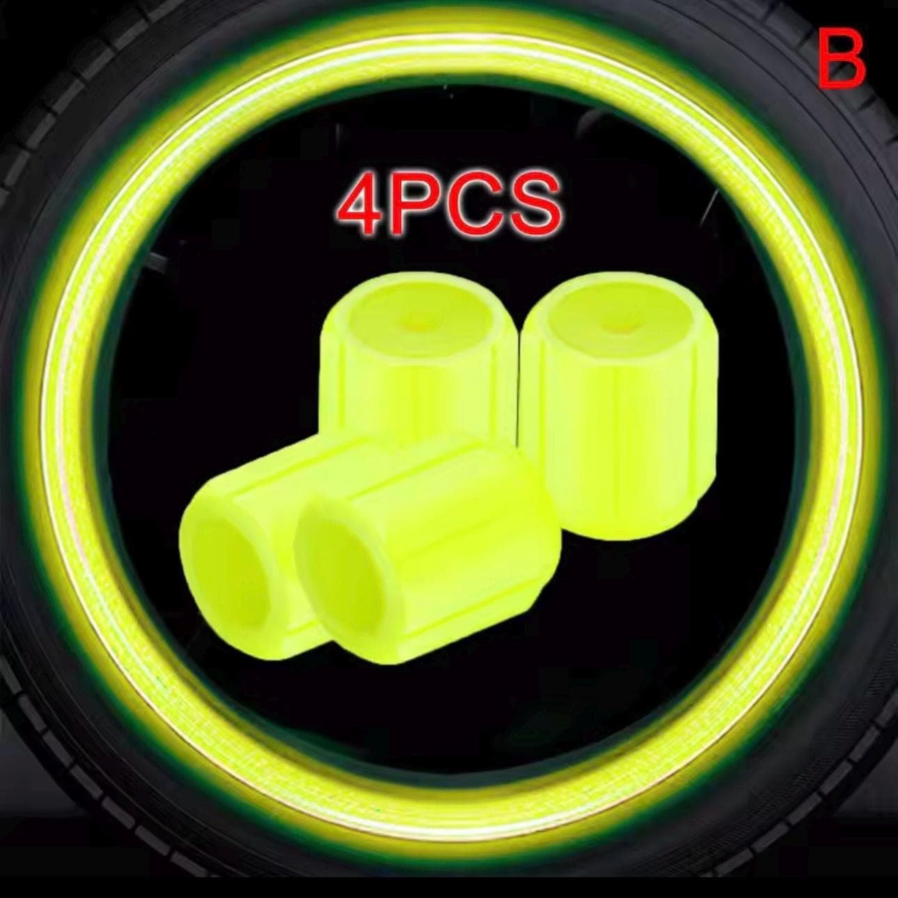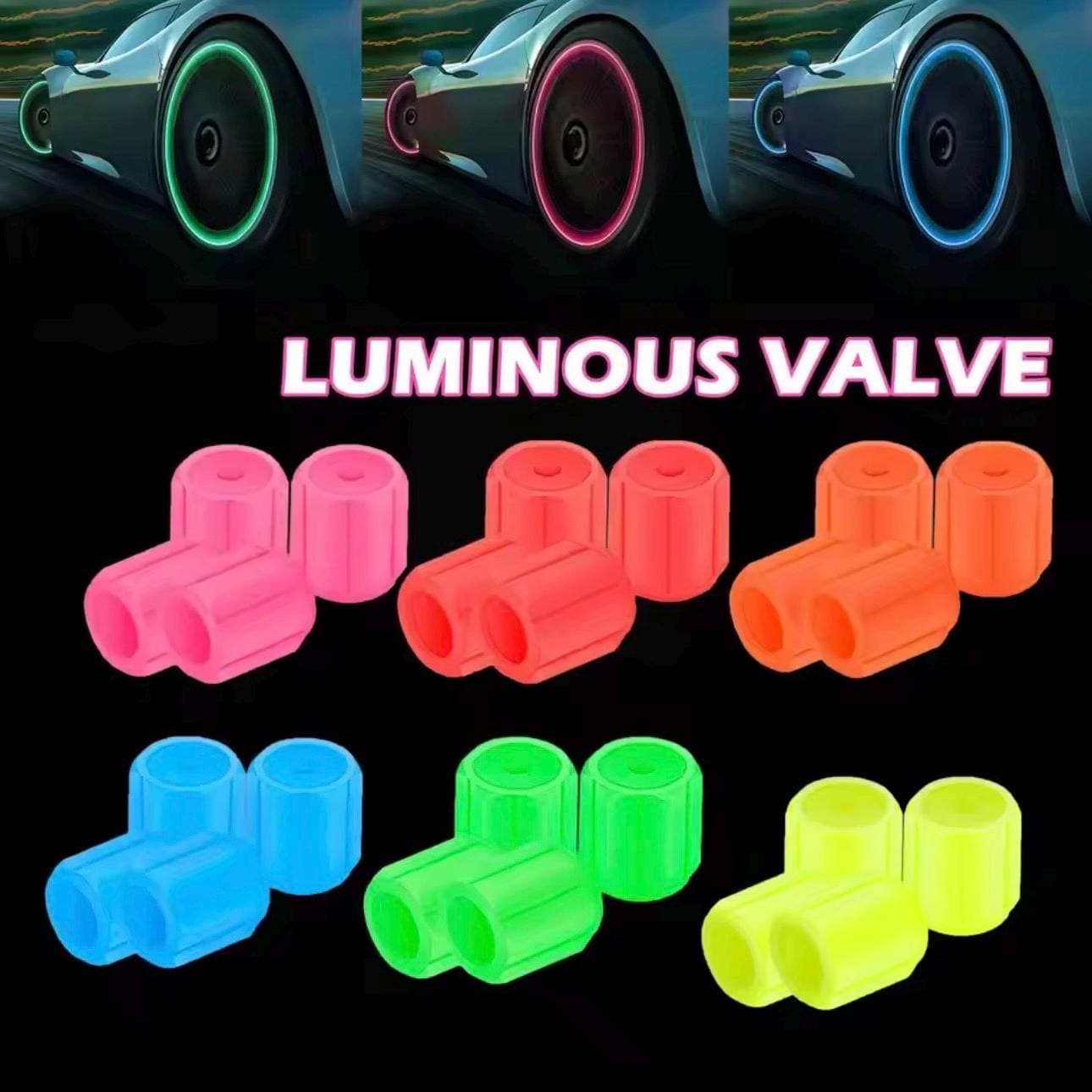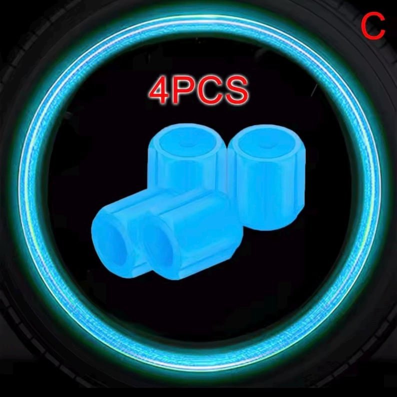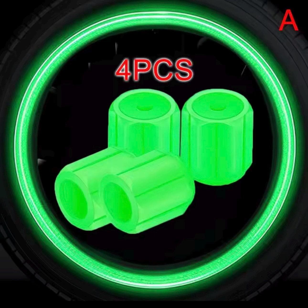 Luminous Tire Valve Caps Set of 4 – Glow-in-the-Dark for Car & Bike – Multiple Colors– Free Shipping