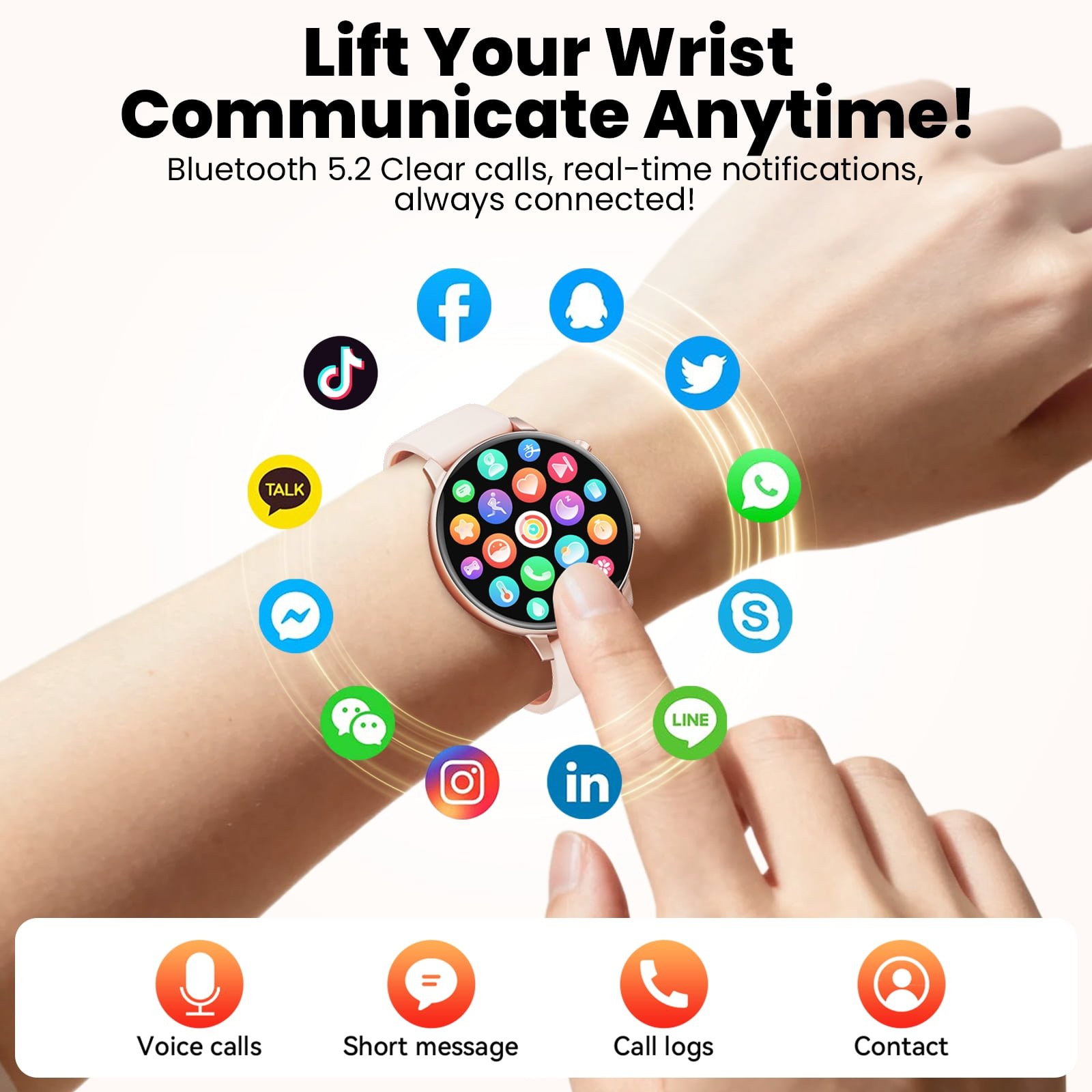 【Interactive And Rich Practical Functions】: With Touch Screen Interaction, Dual Button Interaction, Gesture Interaction, App Download, Ota Upgrade, Charging Prompt And Other Interactive Functions, As Well As Flashlights, Mute, Do Not Disturb Mode, Wrist Up Screen, Find Phone, Weather, Stopwatch, Timer, Alarm Clock, Voice Assistant, Mini Games, Remote Control Photography, Calculator, Password Lock And Other Practical Functions, It Helps You Improve Your Quality Of Life.