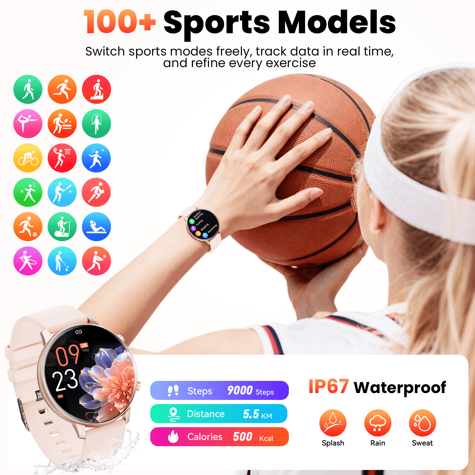 【Multiple Sports Modes And Exercise Data】: Supports Multiple Sports Modes, Including Regular Sports, Outdoor Sports, Training, Dance, Fighting, Ball Sports, Leisure Sports, And Other Sports, To Meet All Your Sports Needs. The Exercise Data Function Will Record Your Daily Stride, Calories Burned, And Distance, And Synchronize It With The Application To Help You Exercise Scientifically.