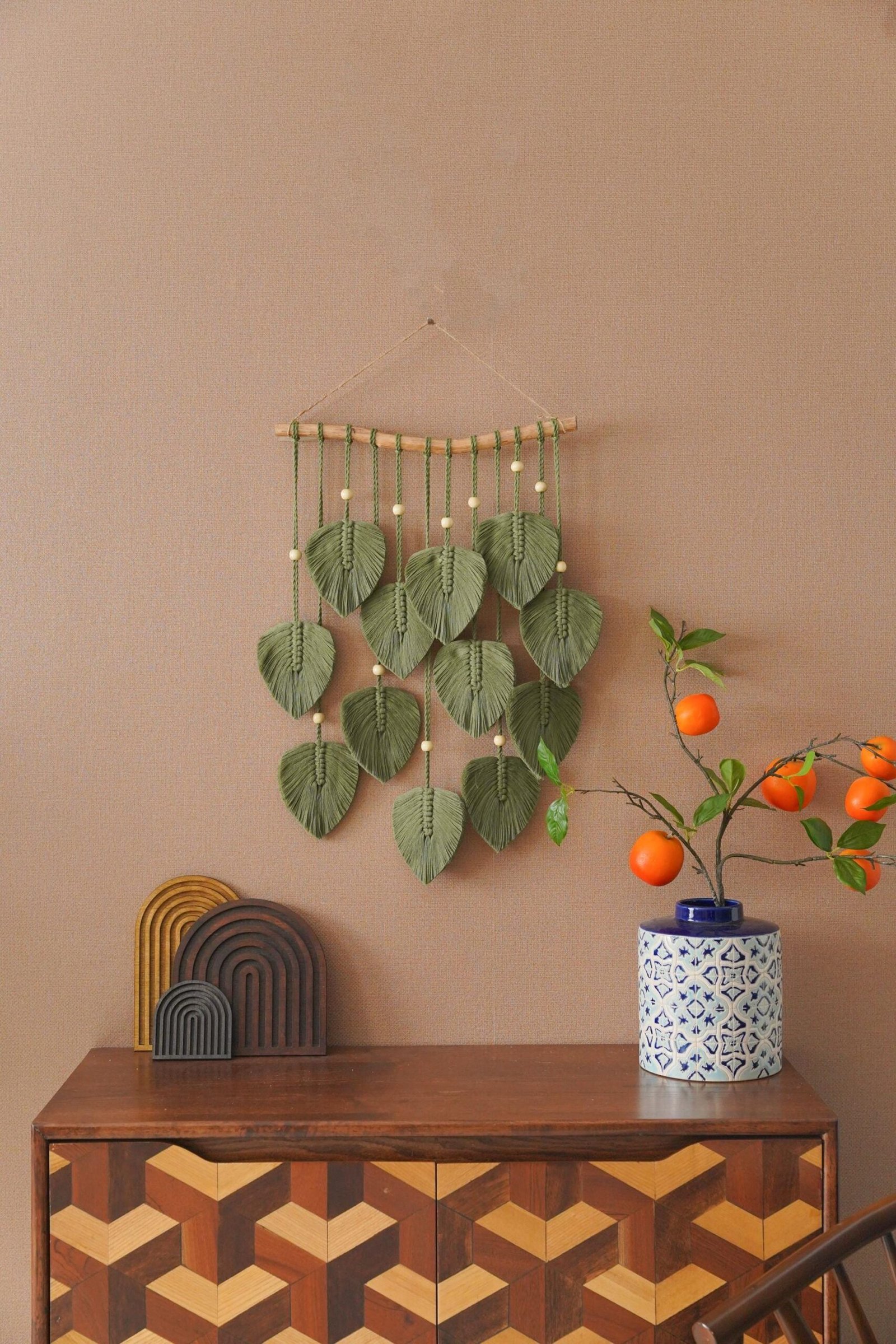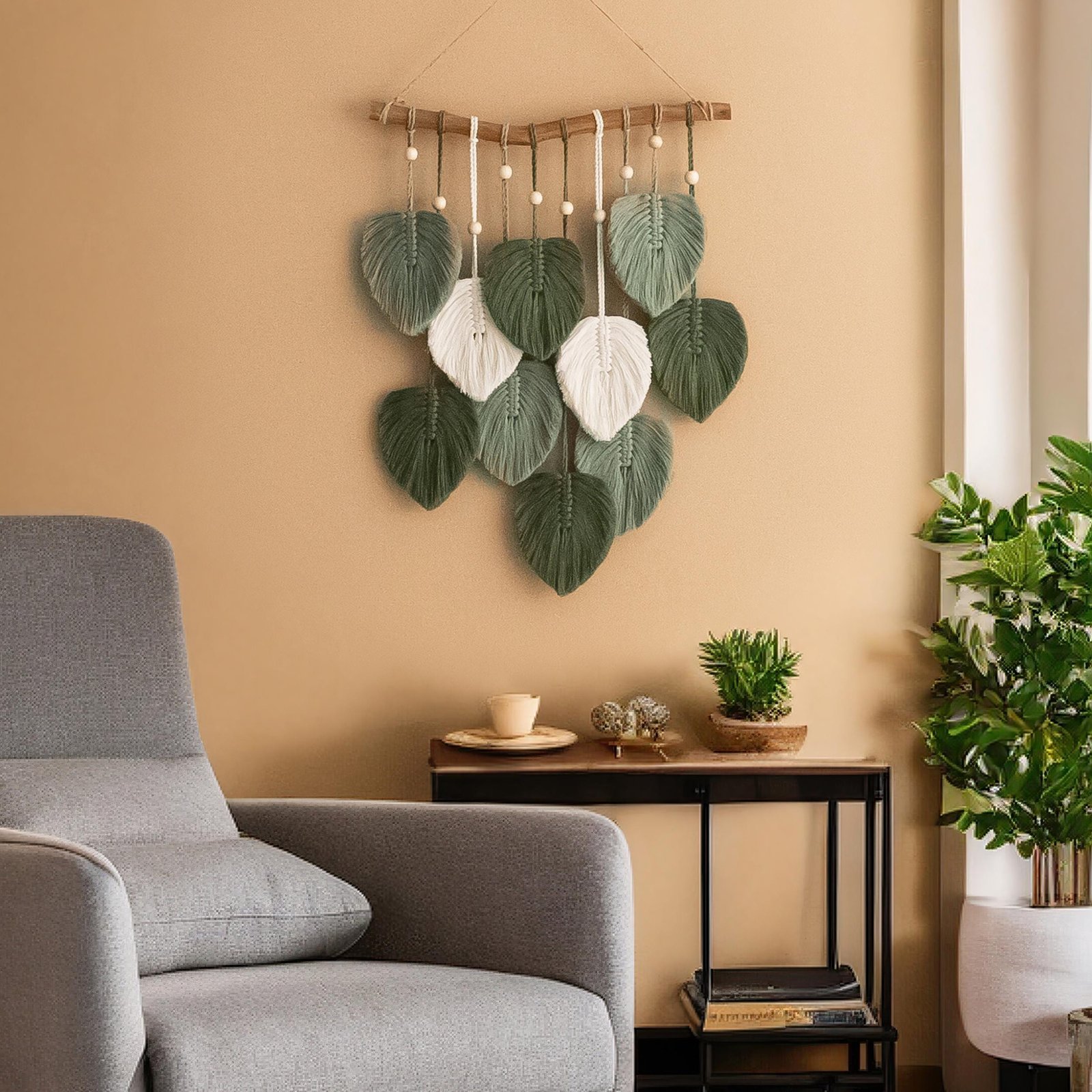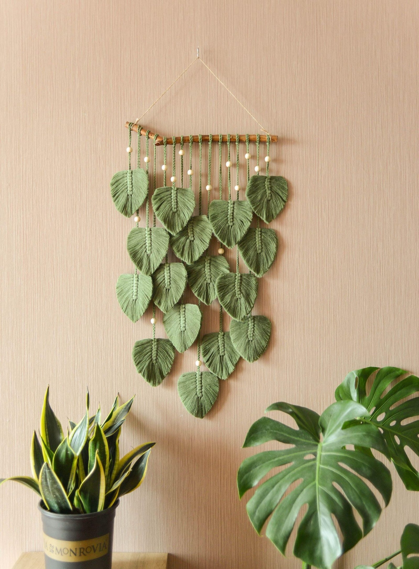Macrame Leaf Wall Hanging, Macrame Wall Hanging, Green Wall Art, Boho Home Decor, New Home Gifts, Farmhouse Decor, Mid-Century Modern L02