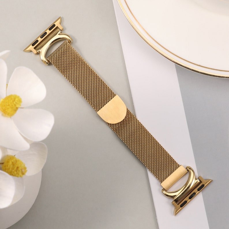 Magnetic Loop Strap for Apple Watch Band 38mm 40mm 41mm 42mm 44mm 45mm 49mm, Women Stainless Steel Metal Mesh Silm Strap for iWatch Band