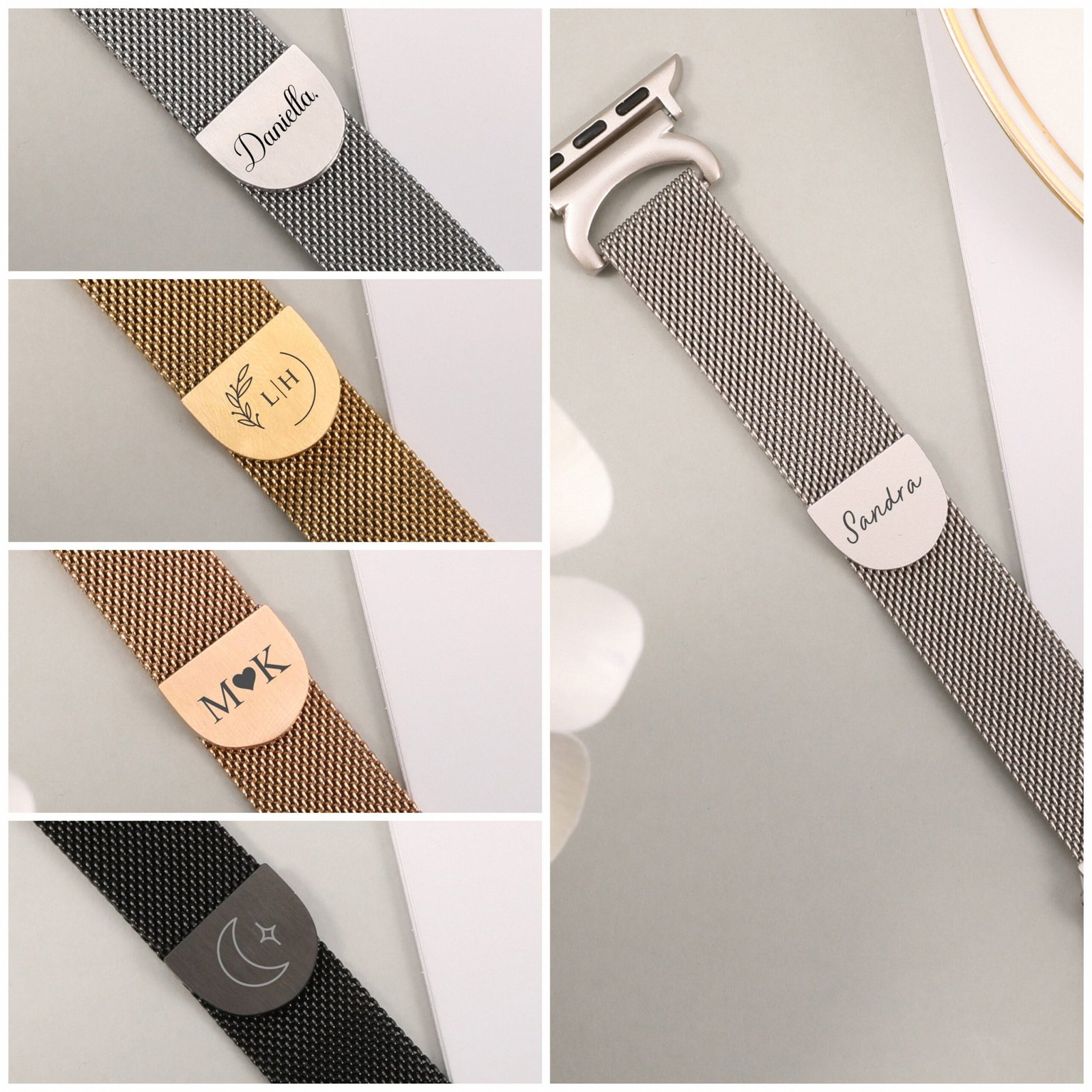 Our magnetic stainless steel Apple watch loop offers customization services, with the default customization position at the metal buckle location. You can choose from our provided styles or share your ideas brilliant with us for a personalized touch. Feel free to leave us a message.
