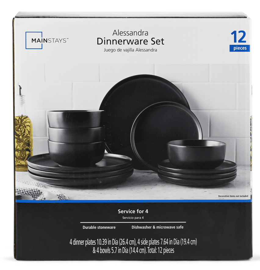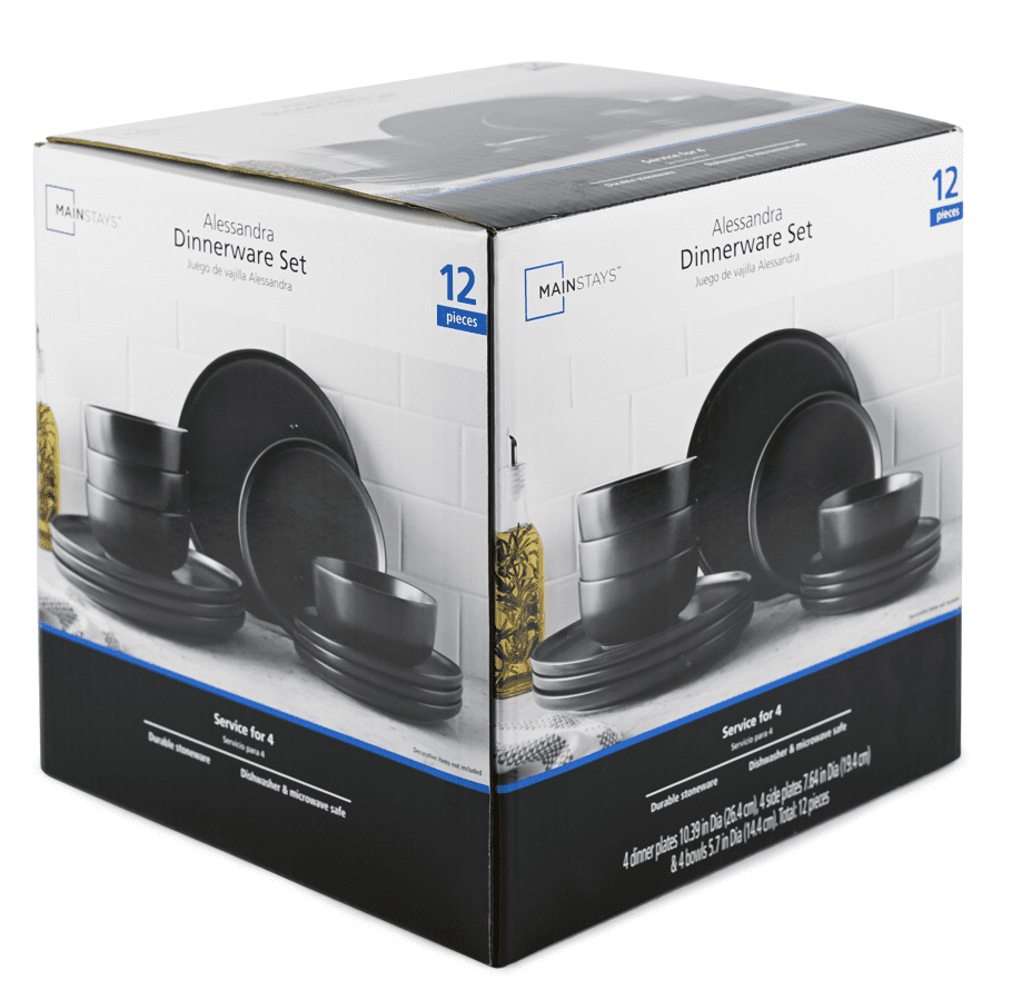 - Mainstays 12-Piece Ale Matte Black Stoneware Dinnerware Set