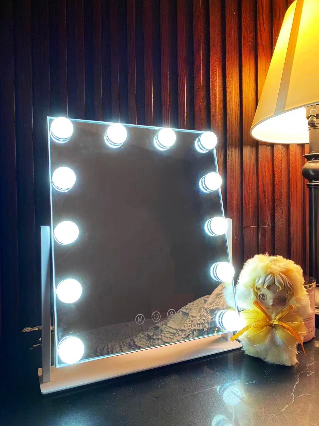 Makeup Mirror 13"e;x11"e; with 3 Color Lights, 360 Rotation, Smart Touch