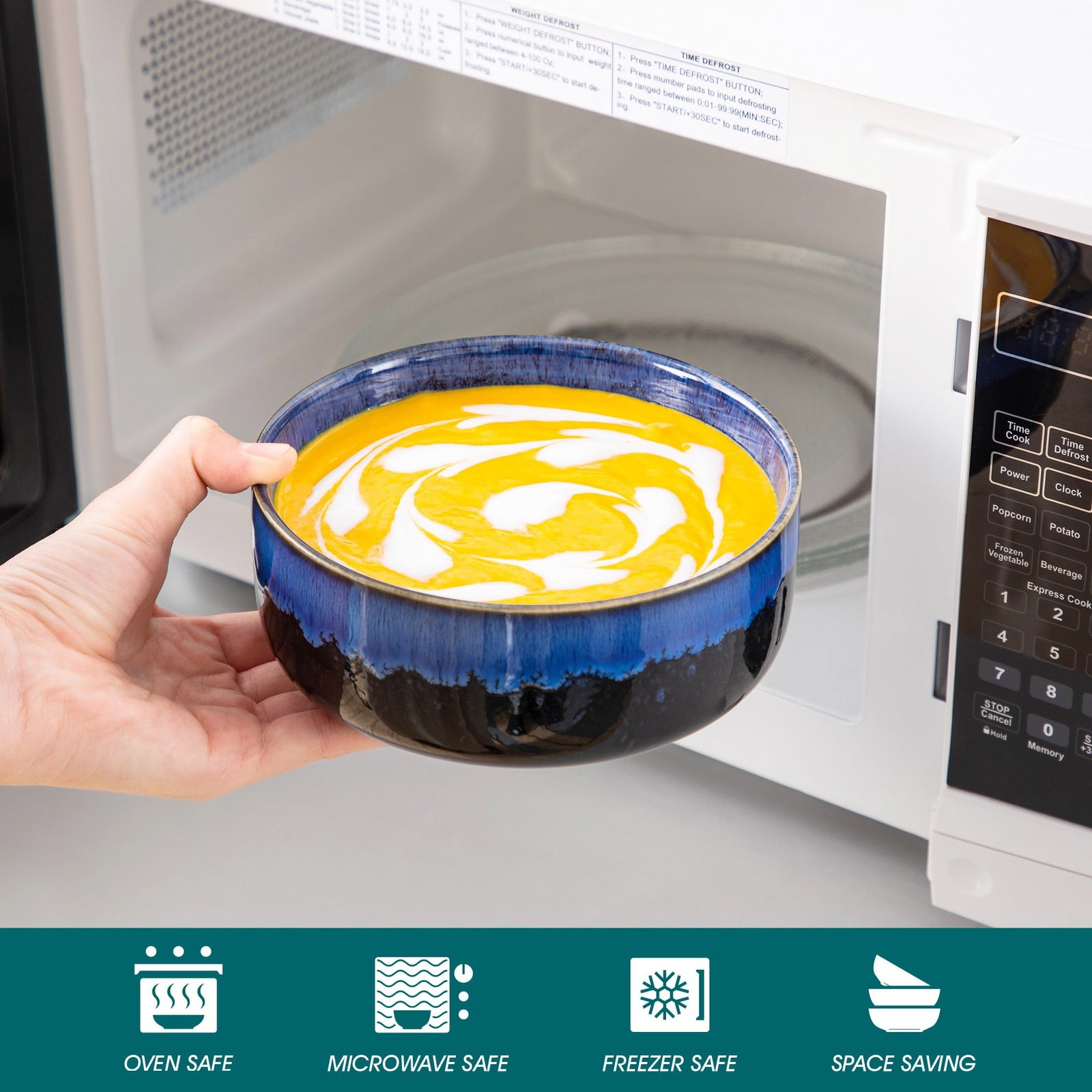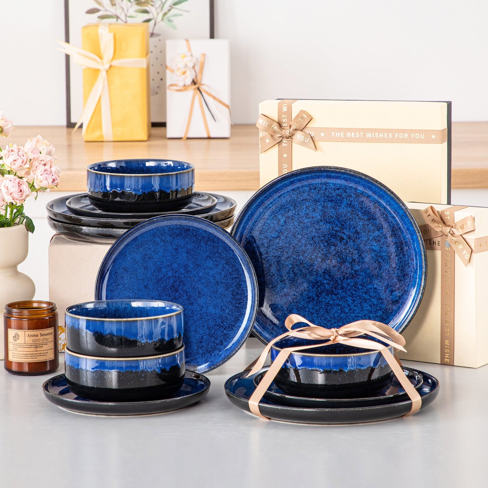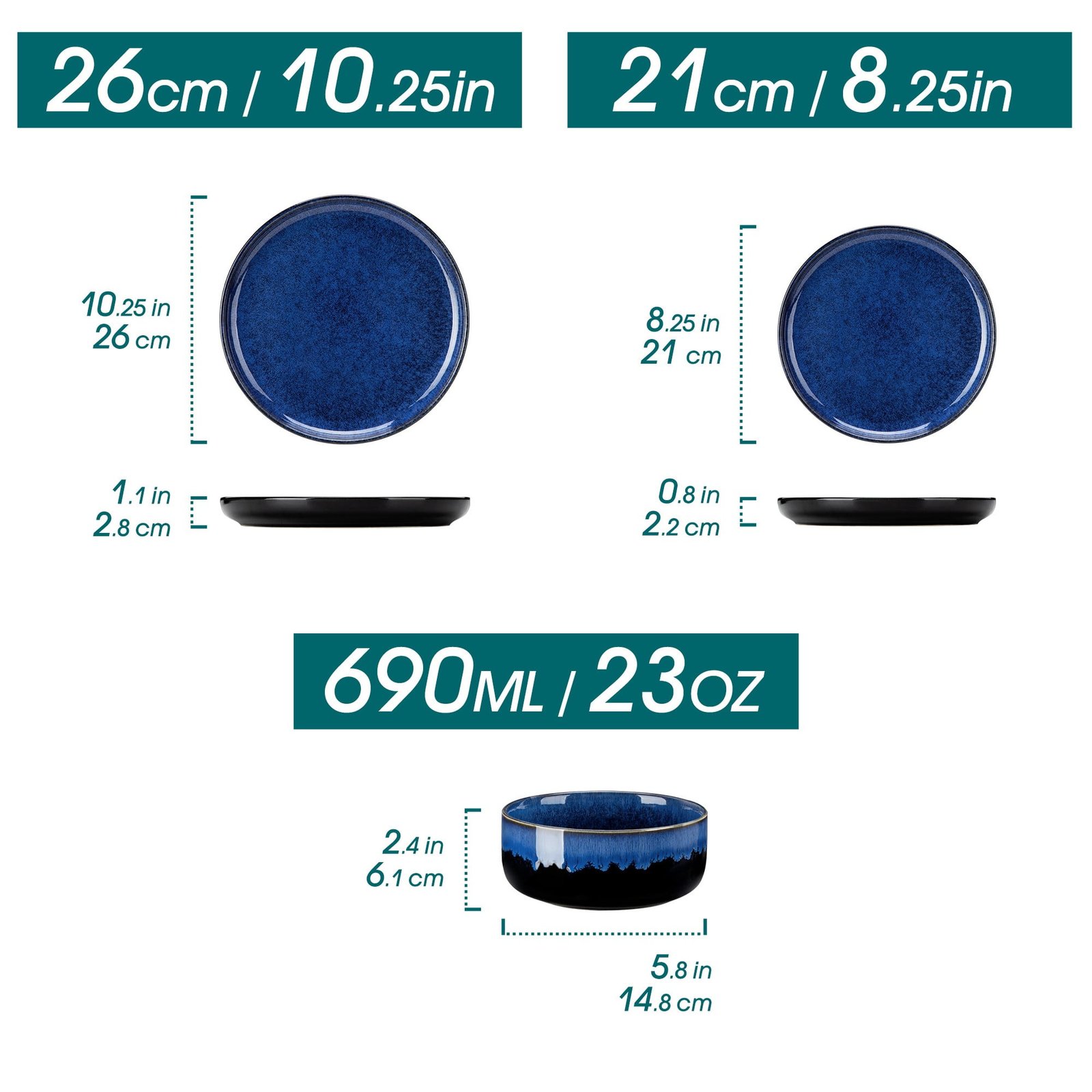 Malacasa 12 Pcs Dinnerware Sets for 4, Plates and Bowls Set, Stoneware Tableware Dishwasher Microwave Safe, Blue Vertical edge shape