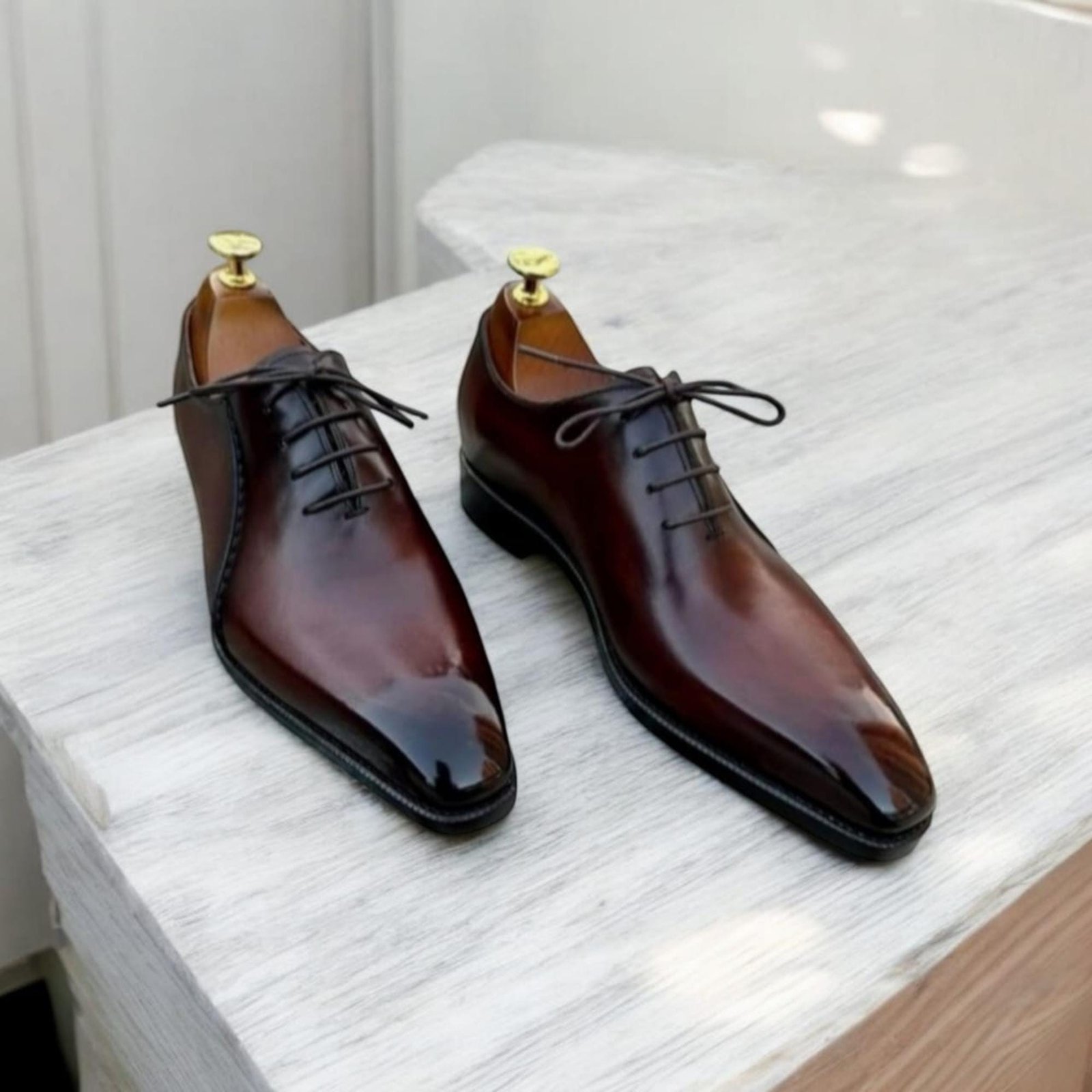 Maroon Shaded Genuine Leather New Men’s Fashion Custom Made Real Leather Handmade Whole Cut Lace up Oxford Formal Dress Shoes