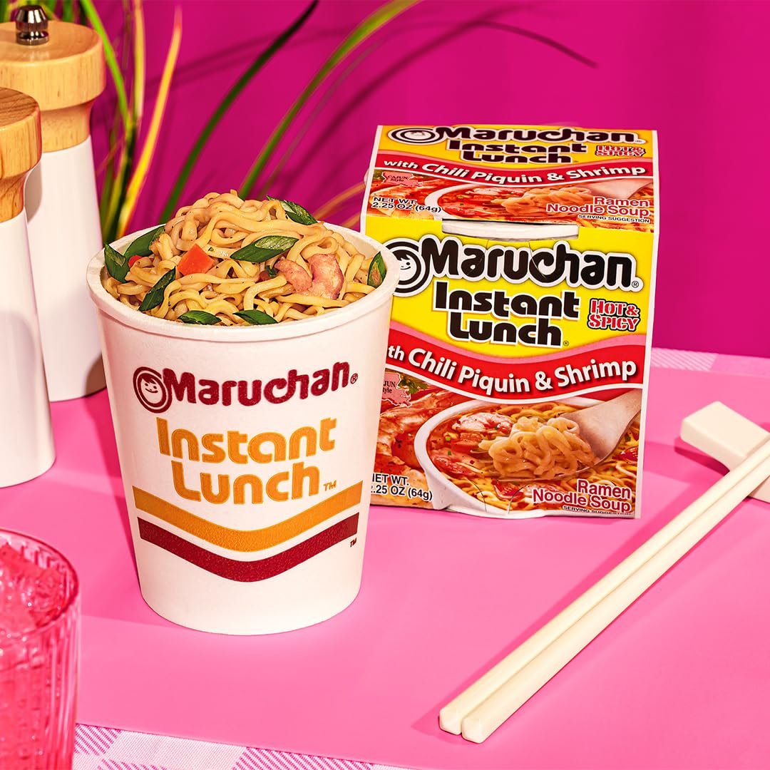 - FAMILY FAVORITE: Maruchan Instant Lunch is a delicious ramen noodle soup packaged in a convenient cup. Just add hot water, wait 3 minutes, and then enjoy a hearty ramen noodle soup. Instant Lunch products are great to enjoy anywhere, camping, hiking, on the beach or at the office. The many flavors are ideal for young families on the go. Discover the great taste and convenience of Maruchan Instant Lunch.