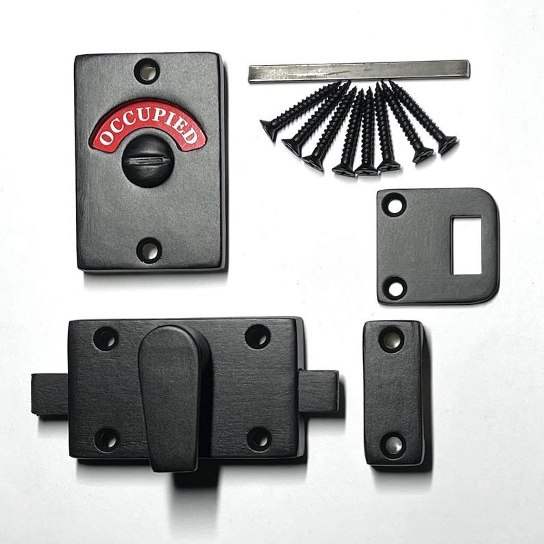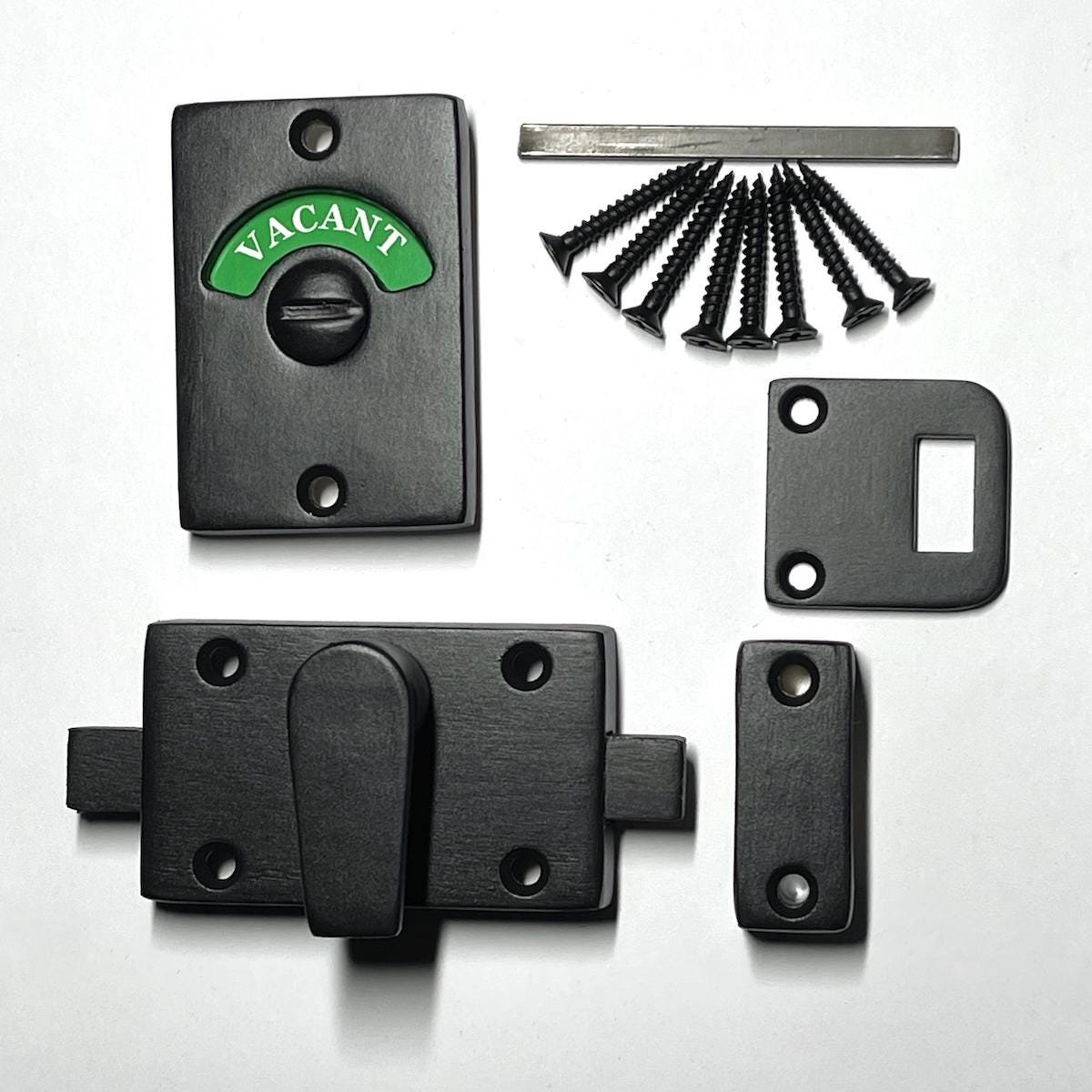 The ADA Compliant Matte Black Bathroom Privacy Indicator Lock is constructed of water-proof zinc and features a tri-coat of UV and water-resistant professional matte clear coat over flat black. It’s assembled with great attention to detail using ultra high quality carbon phosphate steel E-clips to ensure smooth easy action and maximum durability. The 1.5″ turn lever can be toggled open and closed with just a fingertip, there’s no twisting of the wrist or significant pressure required.
