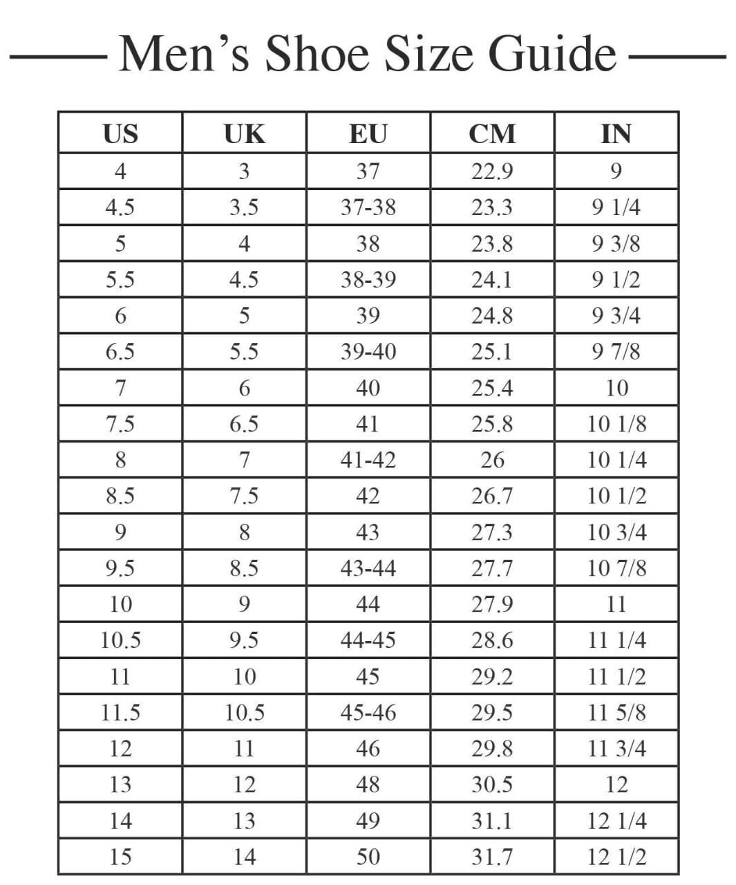 5 US men's ,5.5 US men's ,6 US men's ,6.5 US men's ,7 US men's ,7.5 US men's ,8 US men's ,8.5 US men's ,9 US men's ,9.5 US men's ,10 US men's ,10.5 US men's ,11 US men's ,11.5 US men's ,12 US men's ,12.5 US men's ,13 US men's ,13.5 US men's ,14 US men's ,14.5 US men's ,15 US men's ,15.5 US men's ,16 US men's |