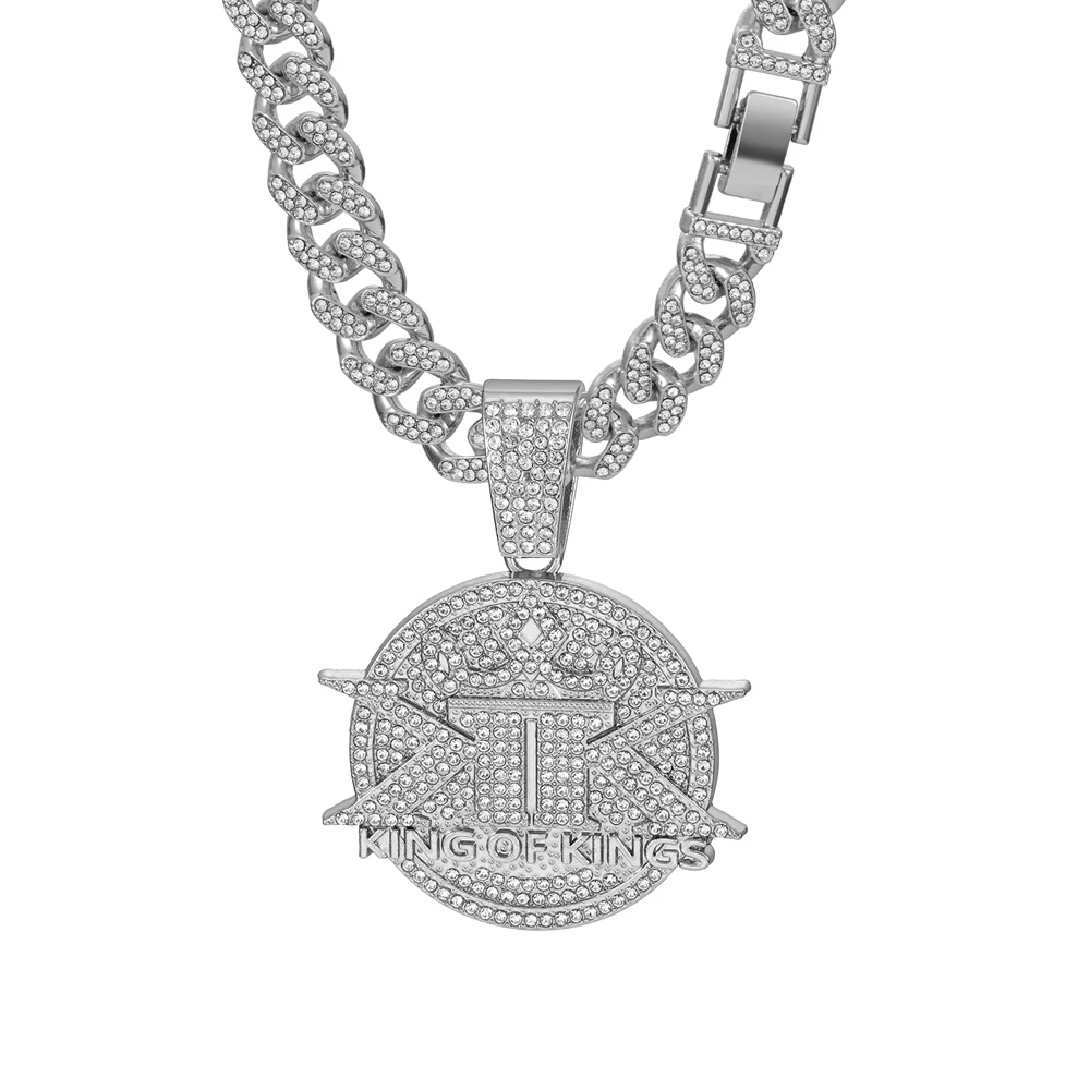 Men’s Hip Hop Street Style Rhinestone Round Shaped & Double K Designed Pendant Necklaces Unisex Daily Wear Cuban Jewelry Gifts