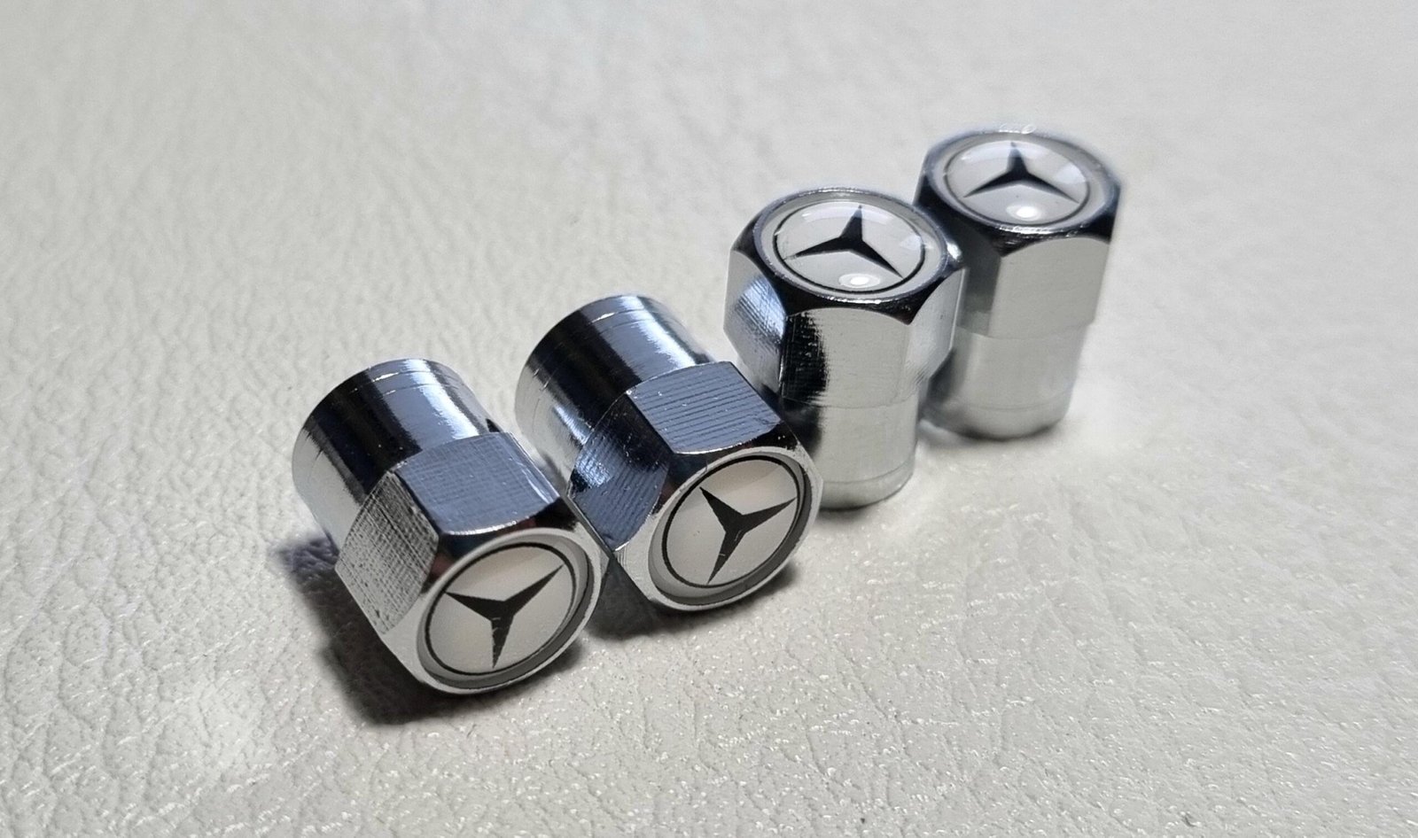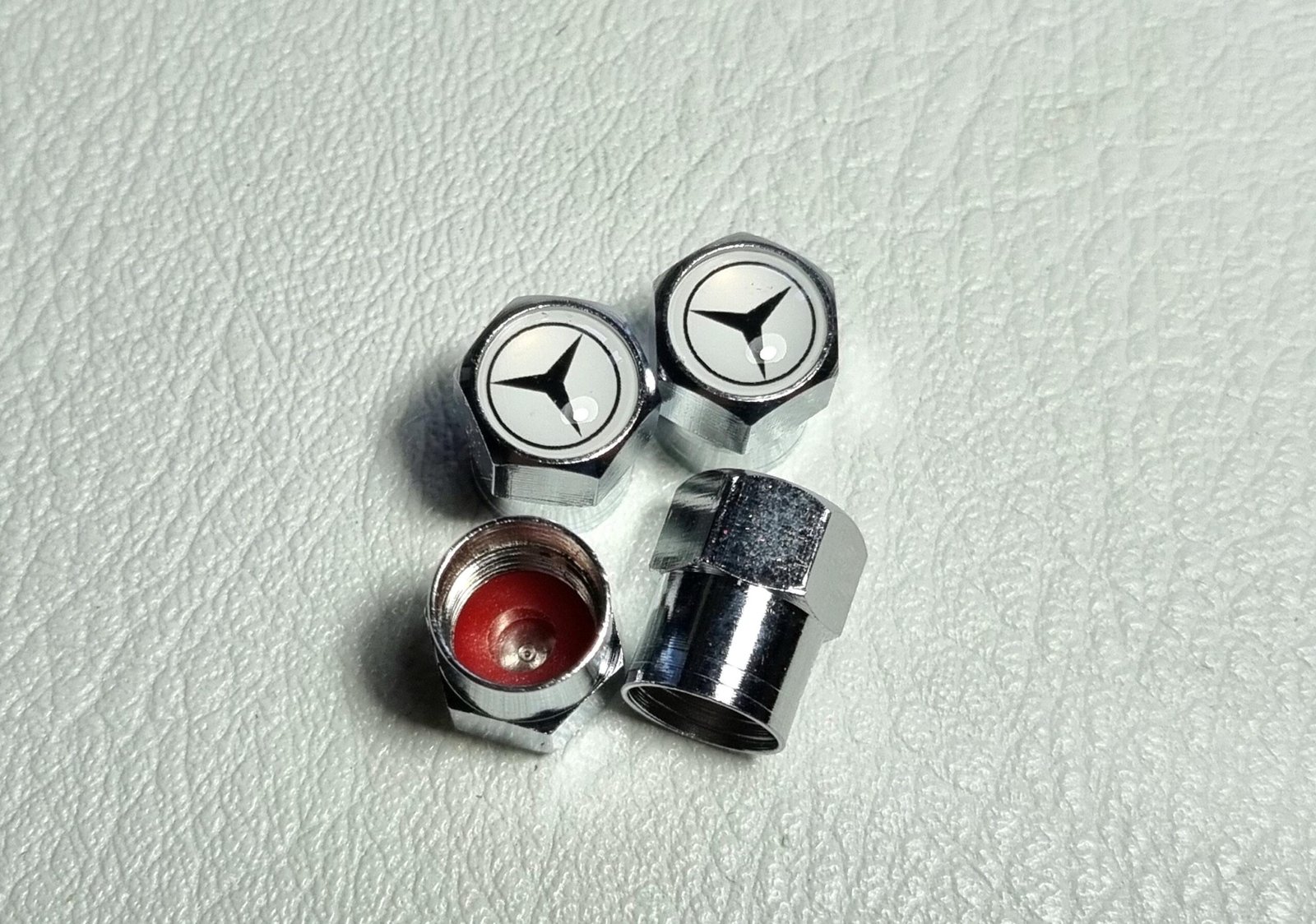 1 set include 4 pcs tire valve dust caps with logo mercedes star.