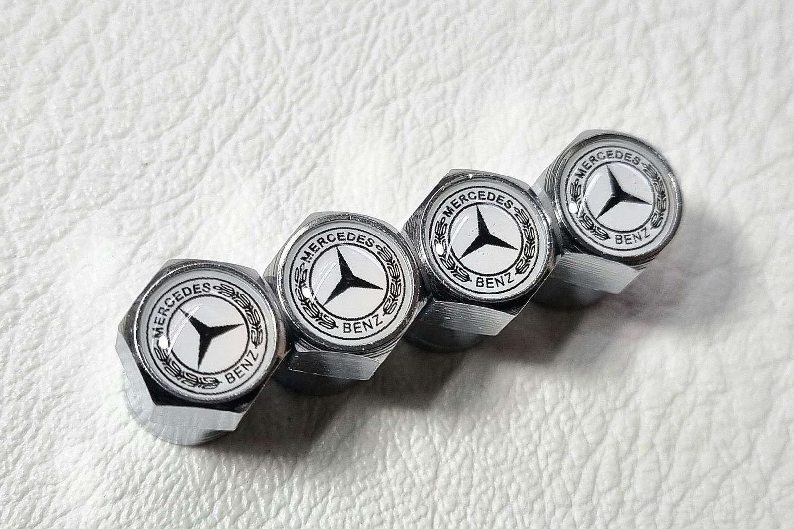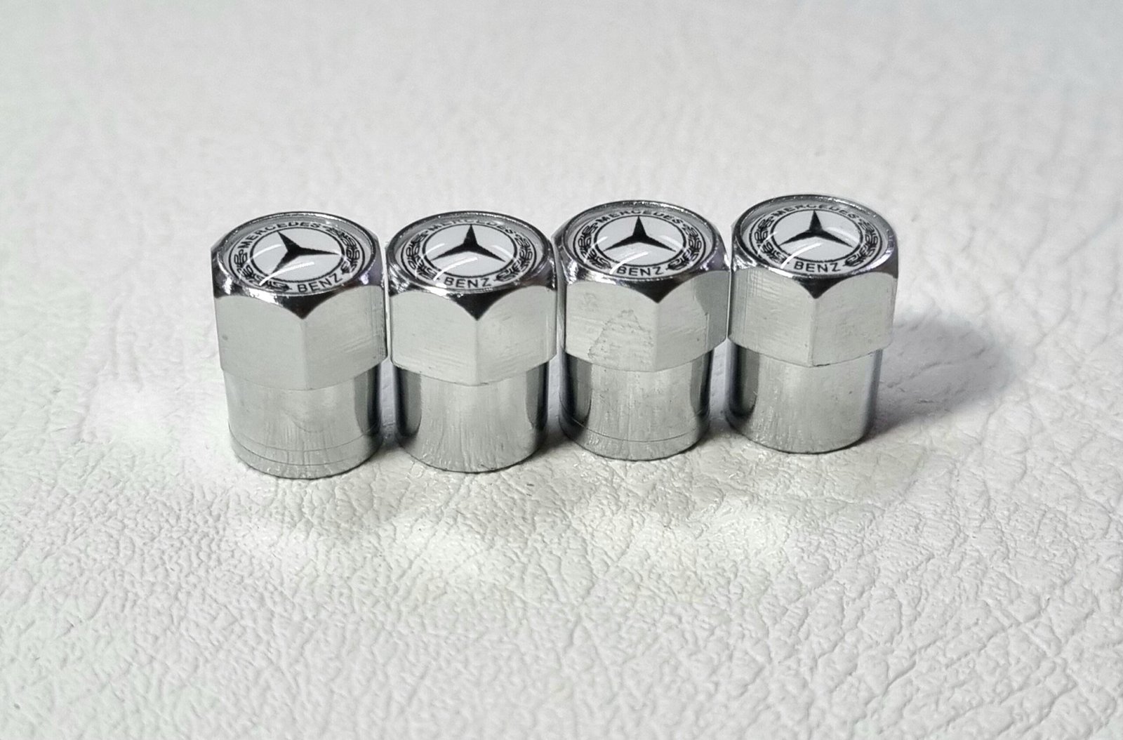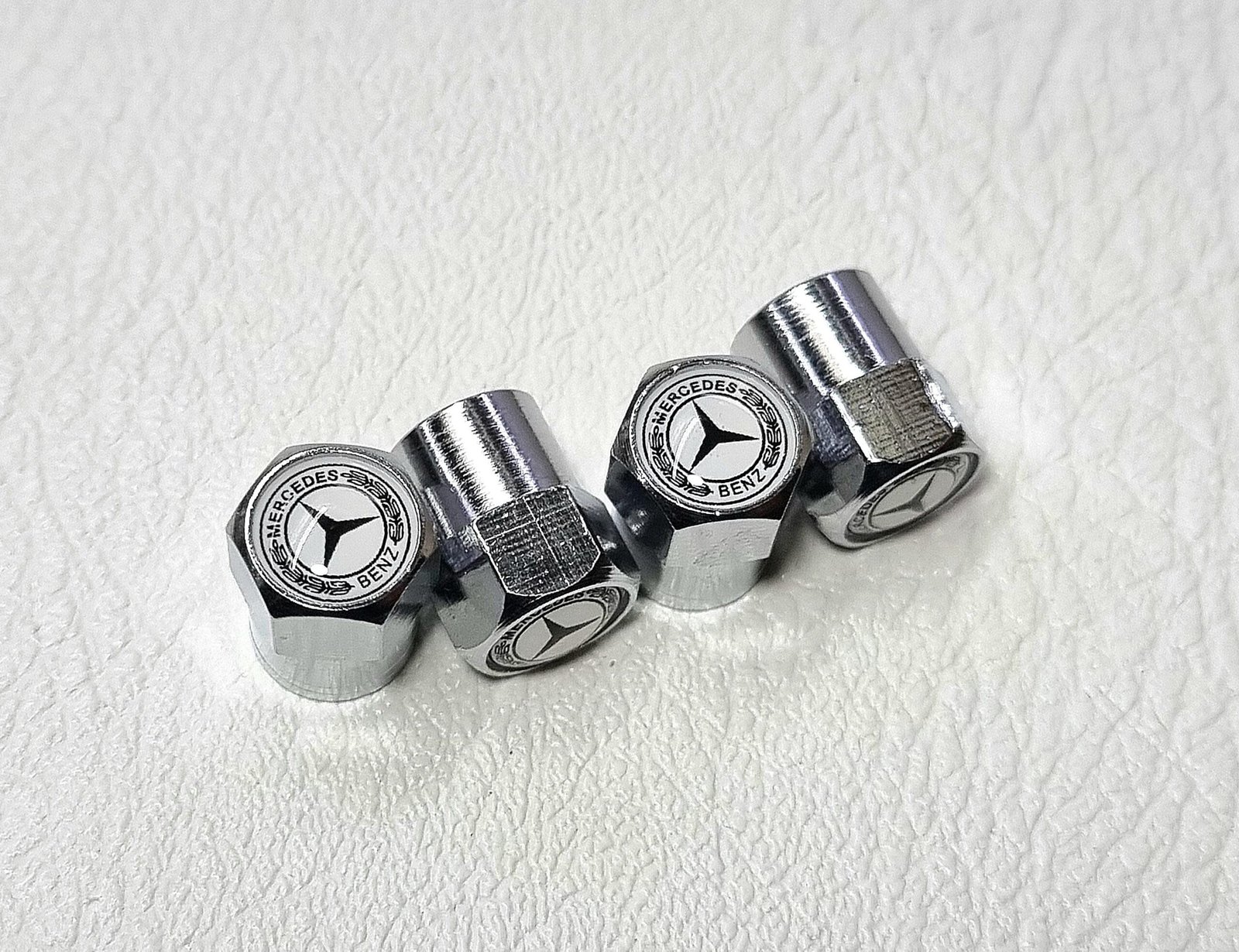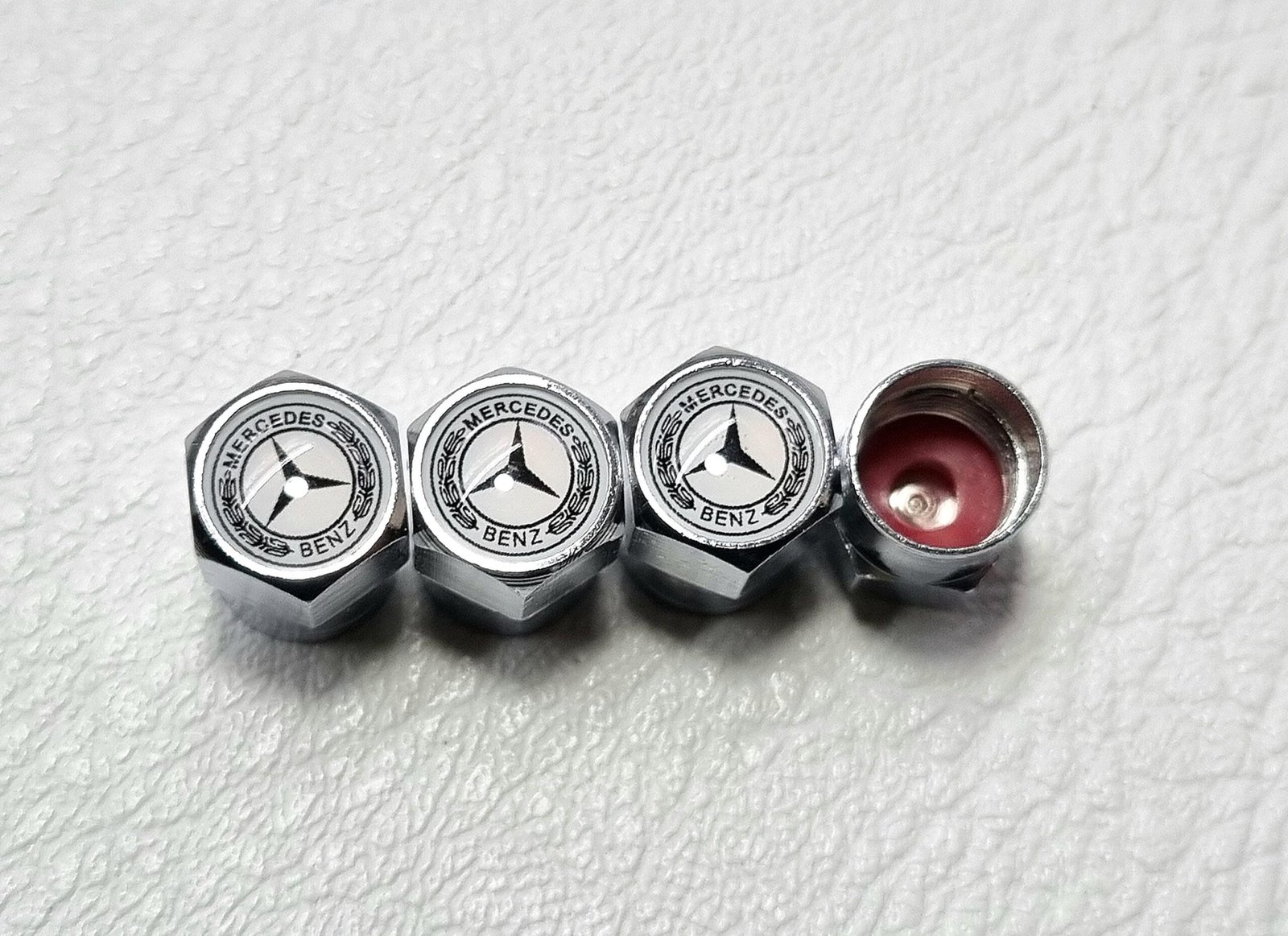 1 set include 4 pcs tire valve dust caps with logo mercedes star.