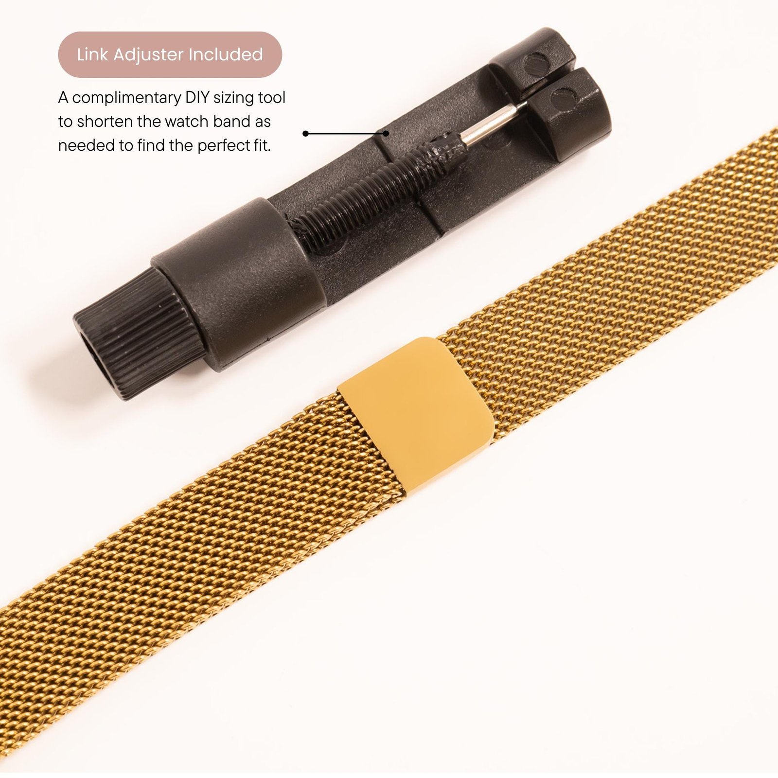 Mesh Adjustable Smart Watch Band, 18K Gold PVD, Luxury Strap for Women's Tech Smart Watch, Elegant Gift for Her