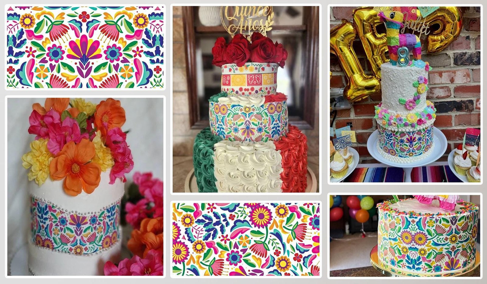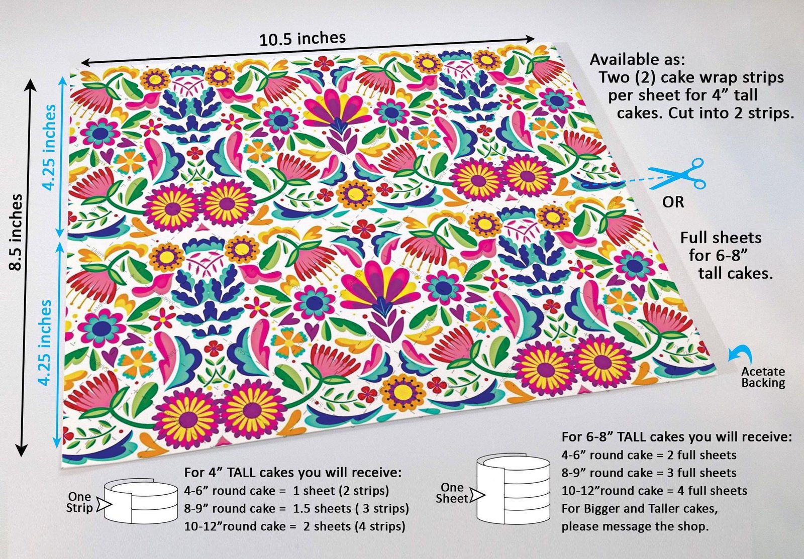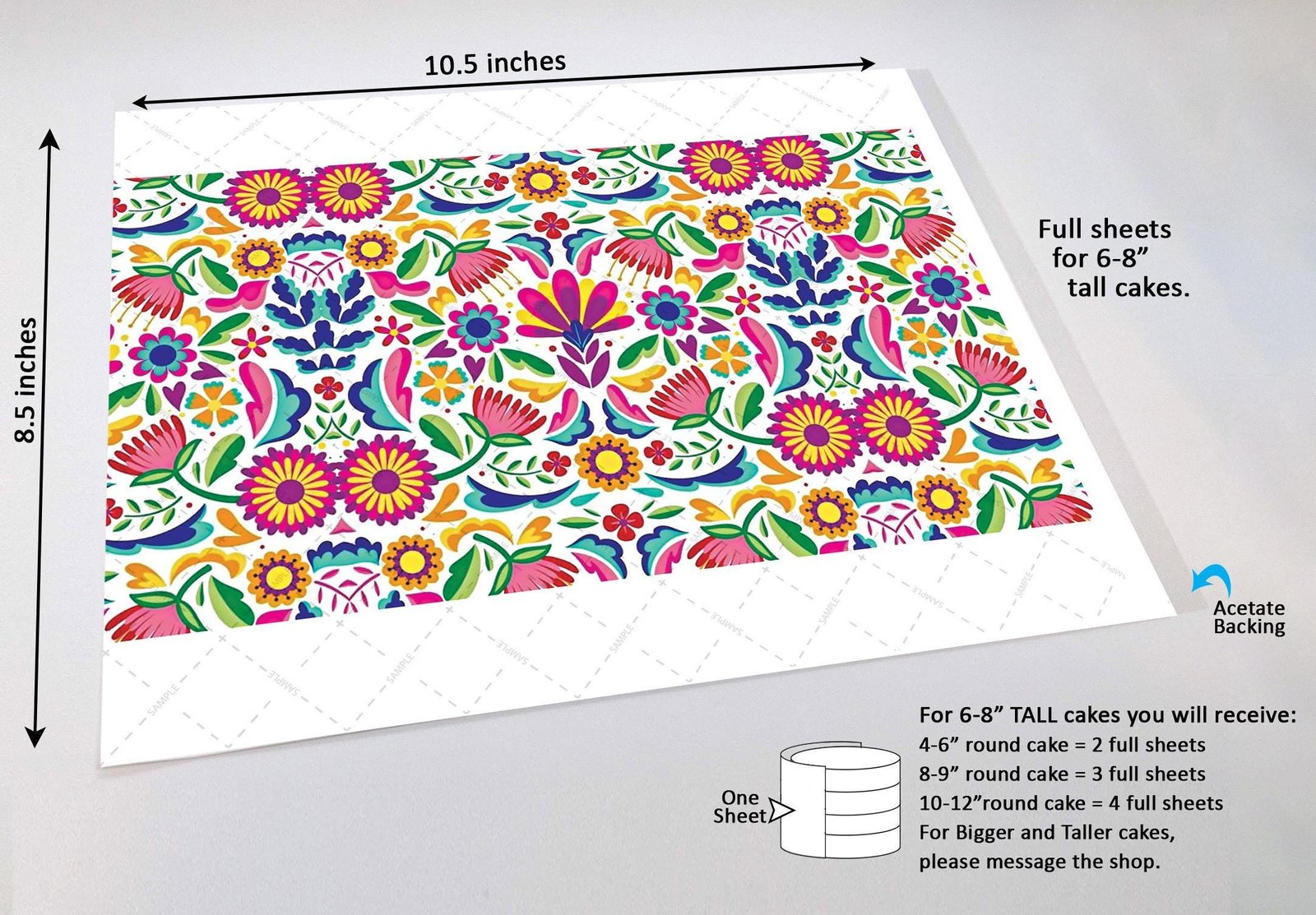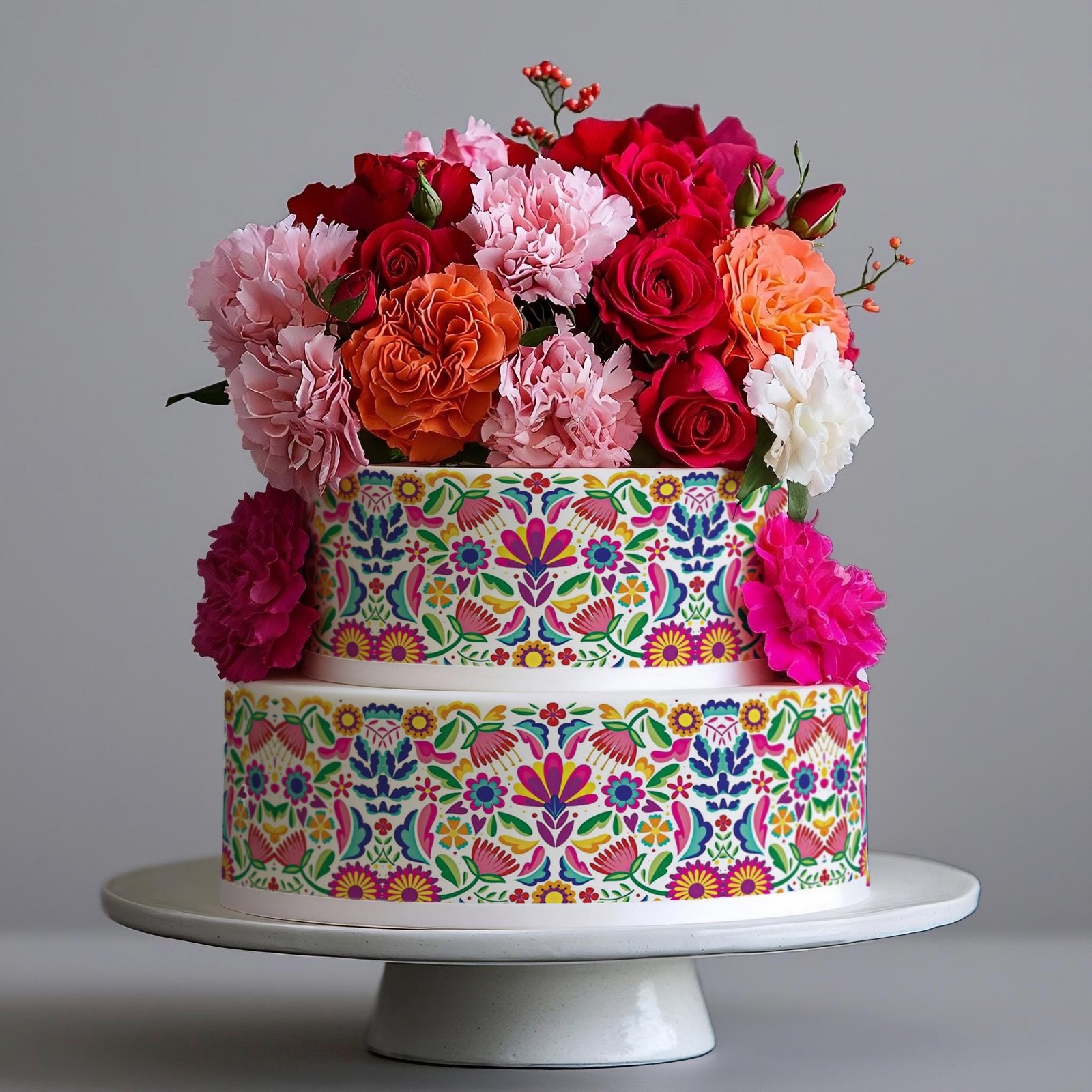 Mexican Embroidery Cake Wrap Mexican Folk Art Edible Image Magical Flower Cake Decor Quinceañera Pattern Icing Vibrant Fiesta Boho Party
