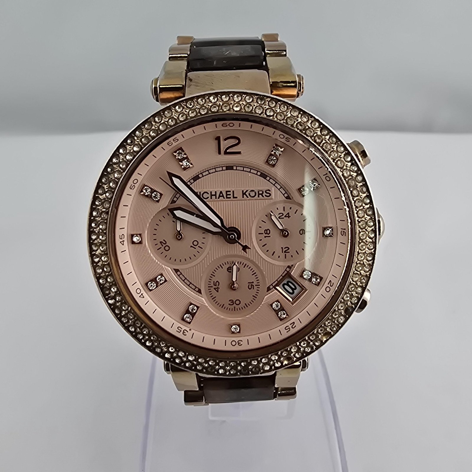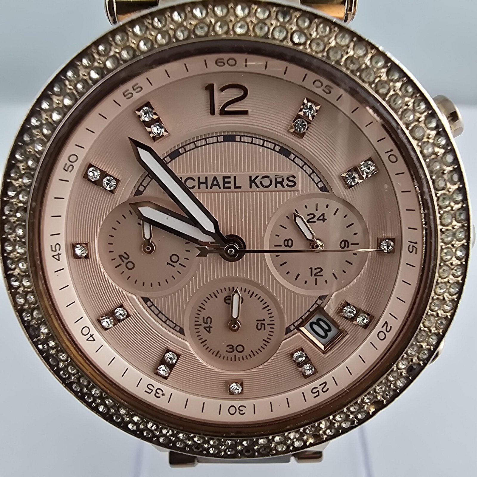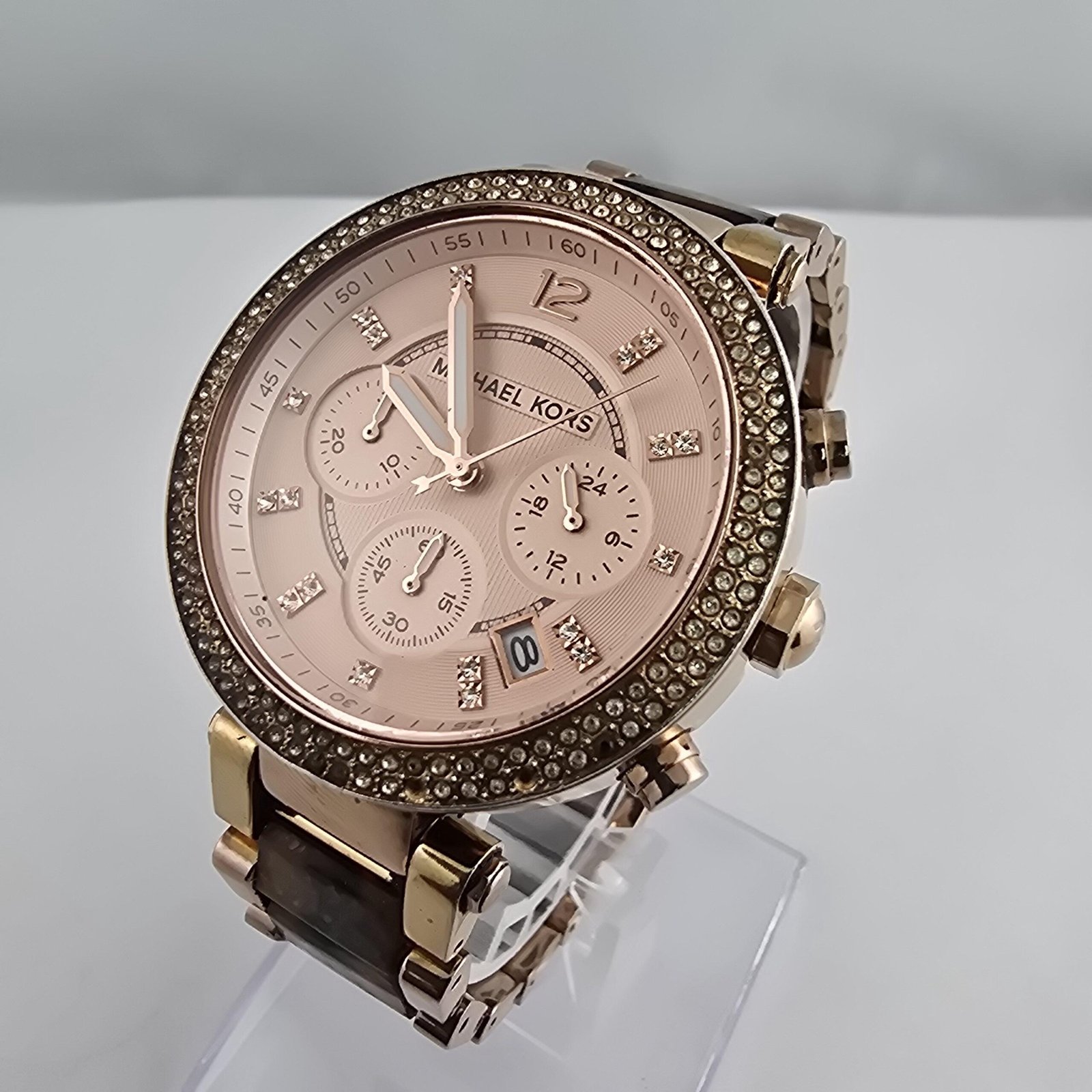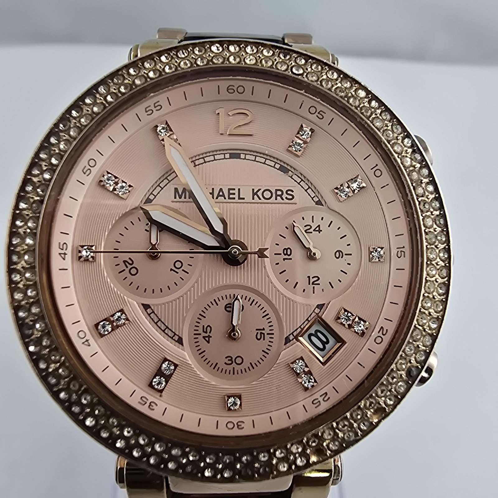Michael Kors Parker MK5538 Rose Gold Chronograph Watch Crystal Bezel 39mm